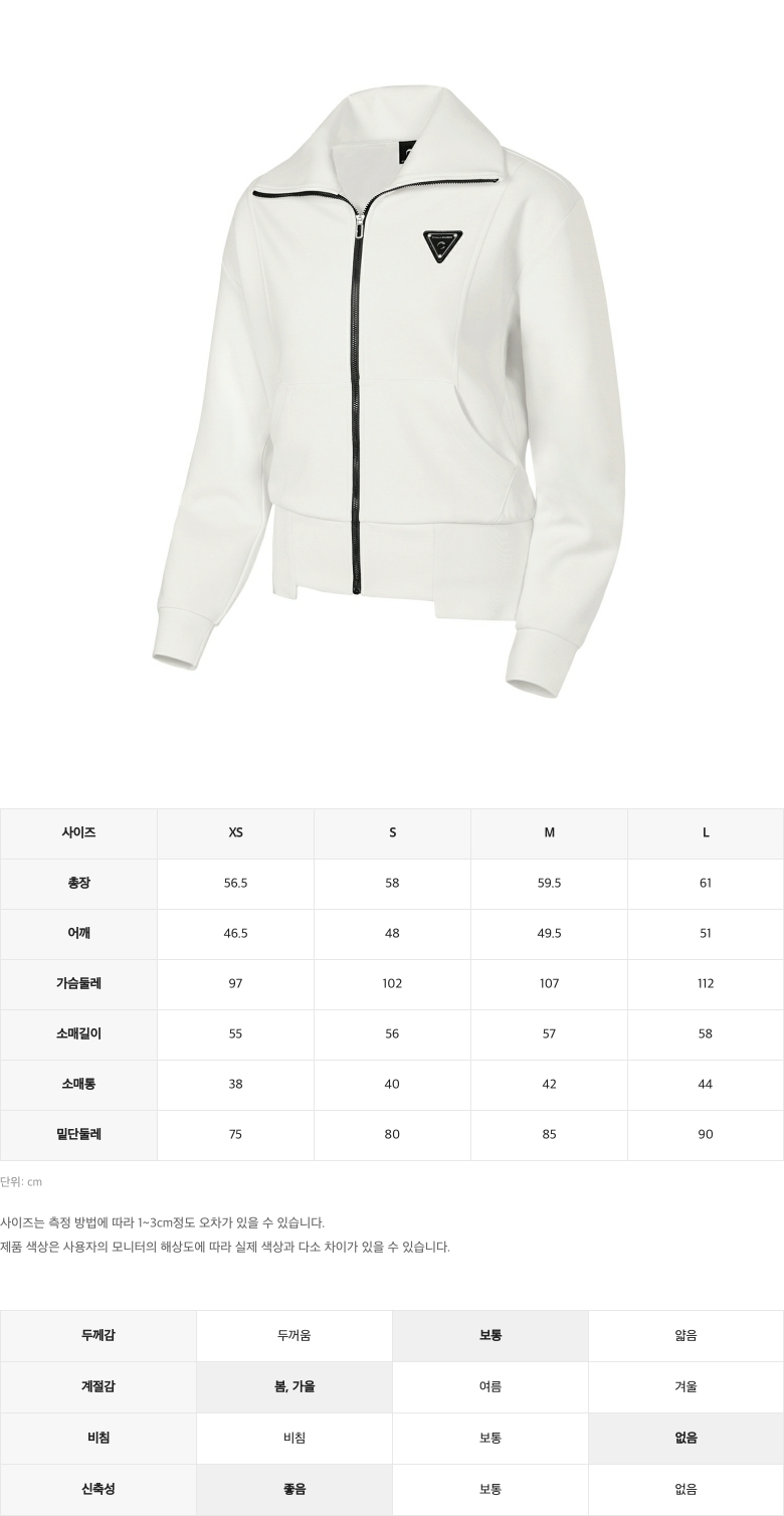 | 소재 | 겉감 : 폴리에스터 80%, 레이온 16%, 폴리우레탄 4% / 배색 : 폴리에스터 92%, 폴리우레탄 8% / 주머니감 : 폴리에스터 100% / |