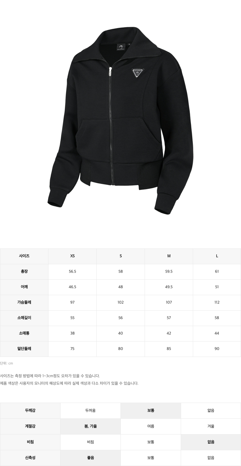 여성 소프트쿠션 캥거루포켓 풀집자켓 블랙