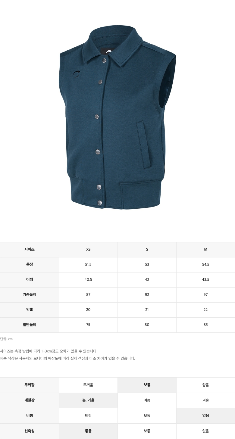 여성 소프트쿠션 심볼 카라넥 베스트 다크블루
