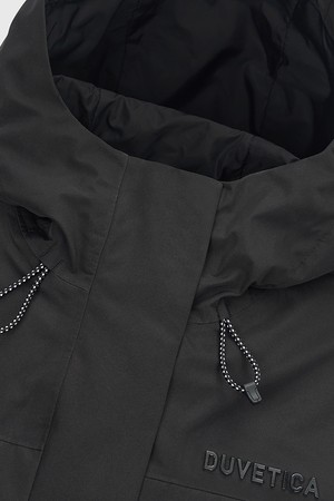 - 후드 형태는 비를 막을 수 있는 형태로 설계되었으며 하단 스트링 및 소매 성형 비조를 적용하여 외부로부터 체온을 보호할 수 있음