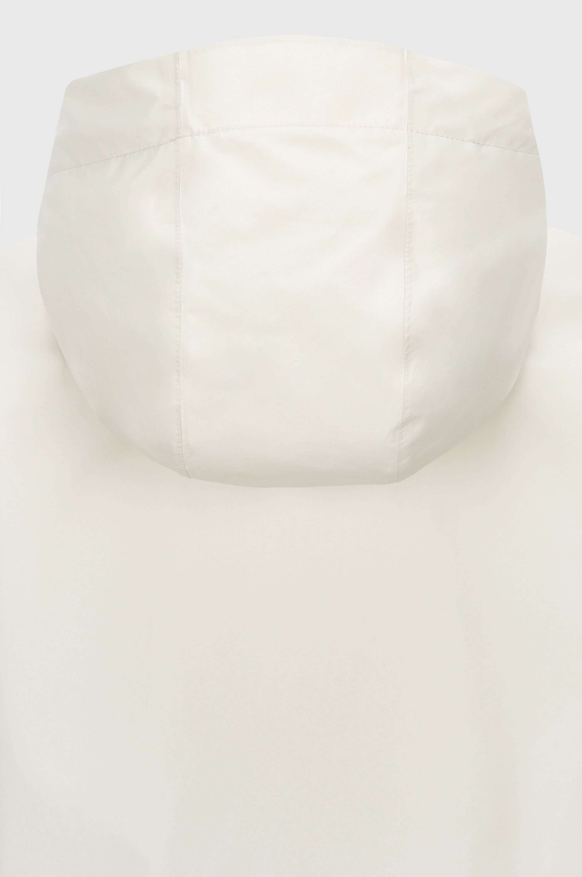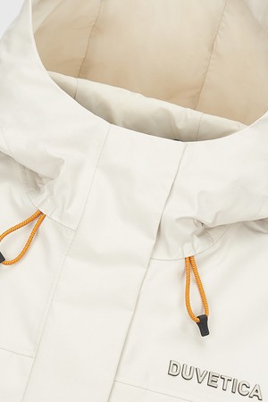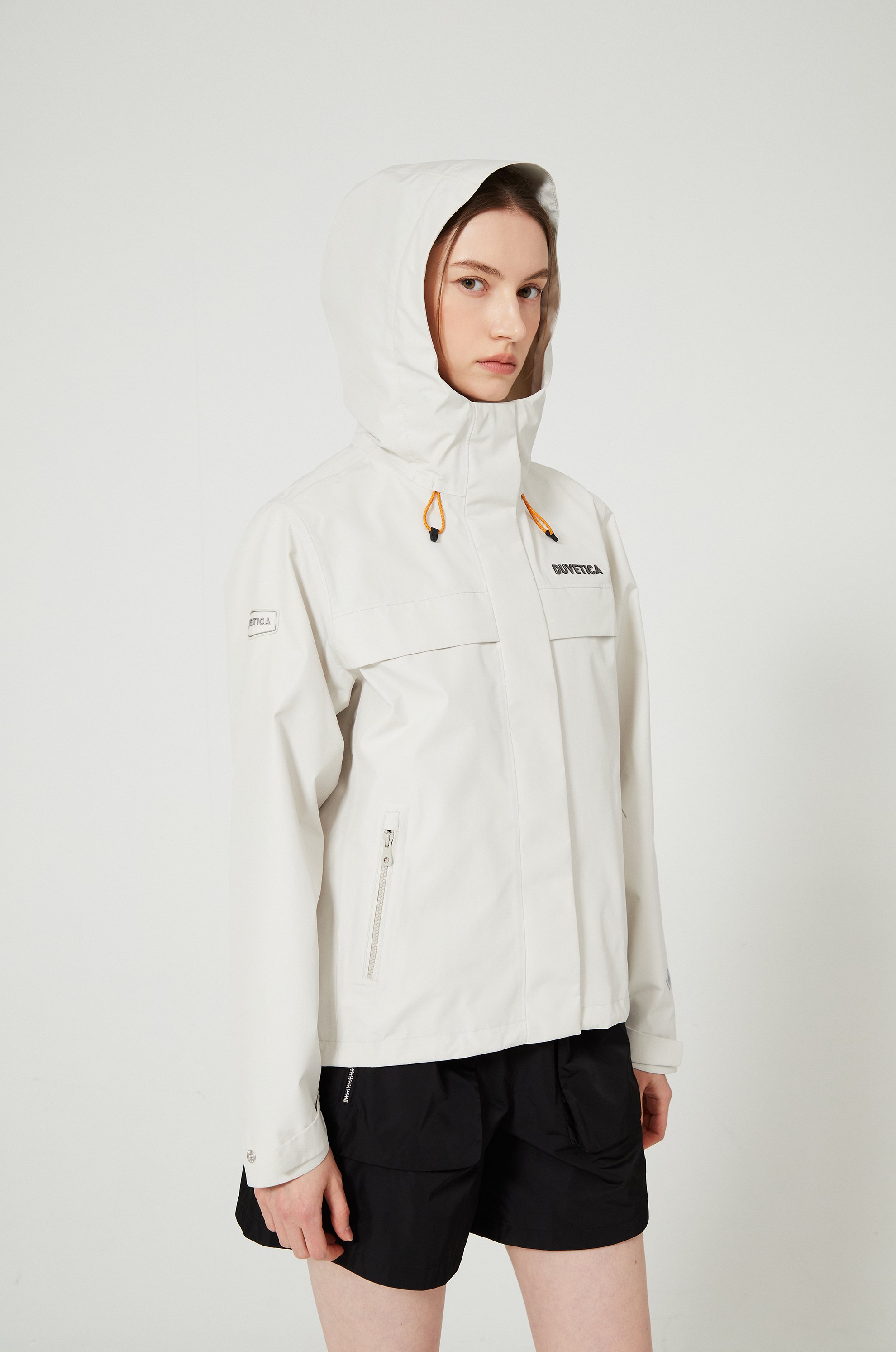 - 후드 형태는 비를 막을 수 있는 형태로 설계되었으며 하단 스트링 및 소매 성형 비조를 적용하여 외부로부터 체온을 보호할 수 있음