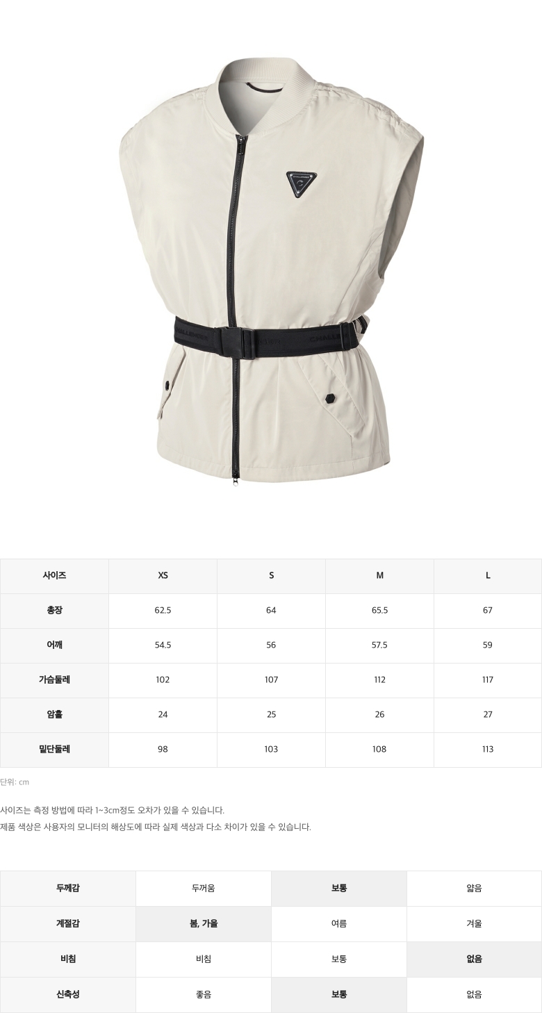 | 소재 | 겉감 : 폴리에스터 100% / 배색 : 폴리에스터 92%, 폴리우레탄 8% / 주머니감 : 폴리에스터 100% |