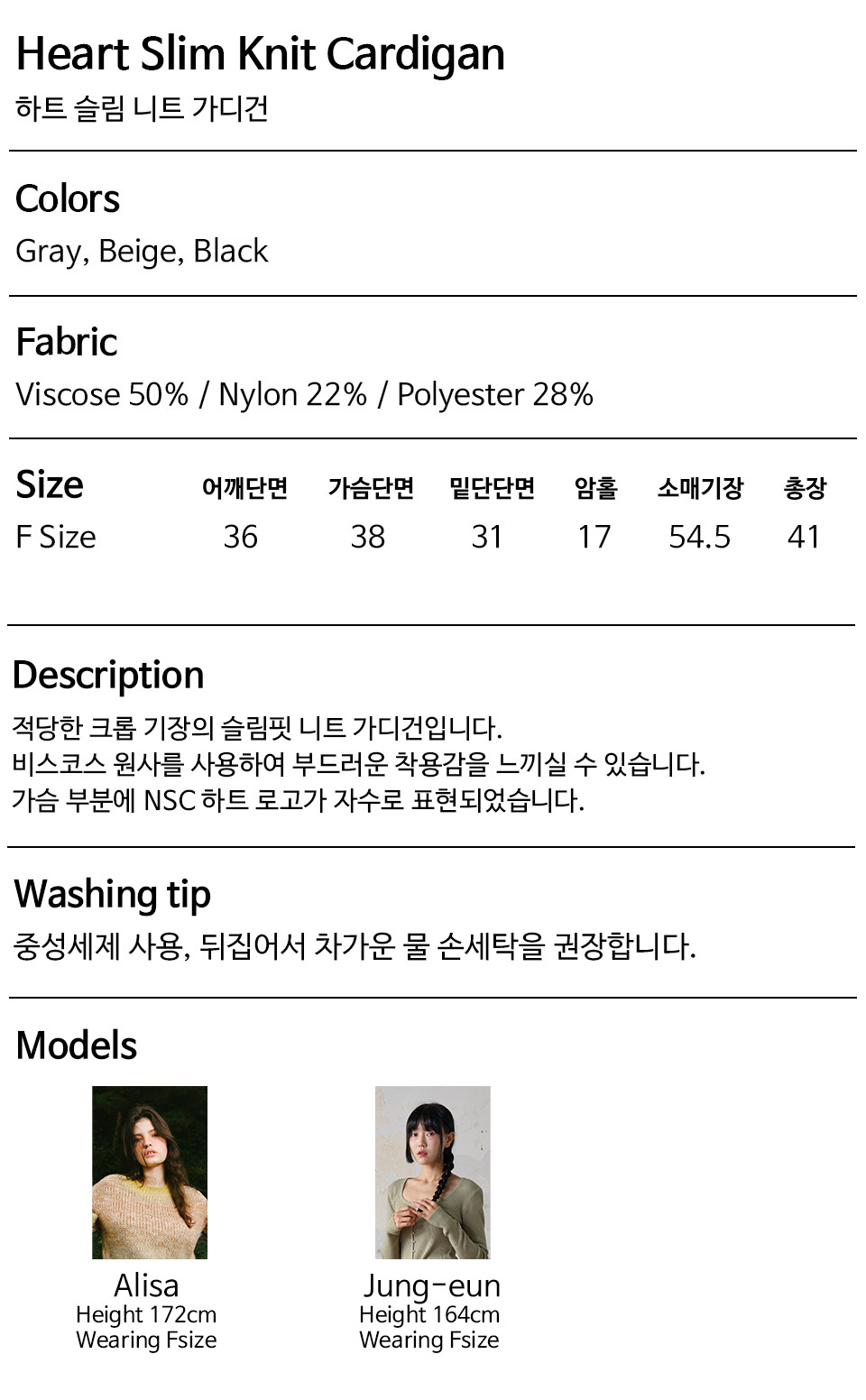 하트 슬림 니트 가디건 (Black)