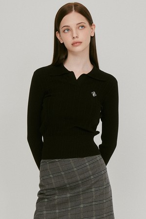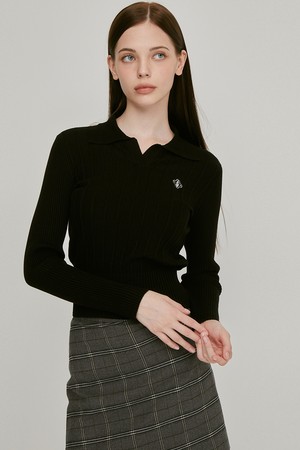 심플 카라 골지 니트 티셔츠(블랙)_L3C1-NT11K