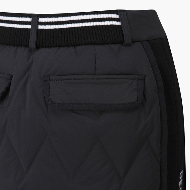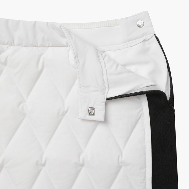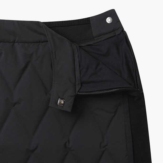 사이드 니트 배색으로 다운 충전재를 사용했음에도 슬림한 실루엣을 연출해주는 스커트입니다.