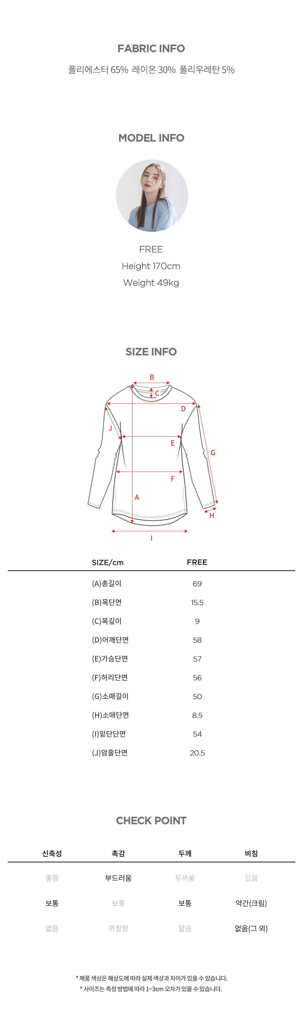 | 소재 | 폴리에스터65% 레이온30% 폴리우레탄5% |
