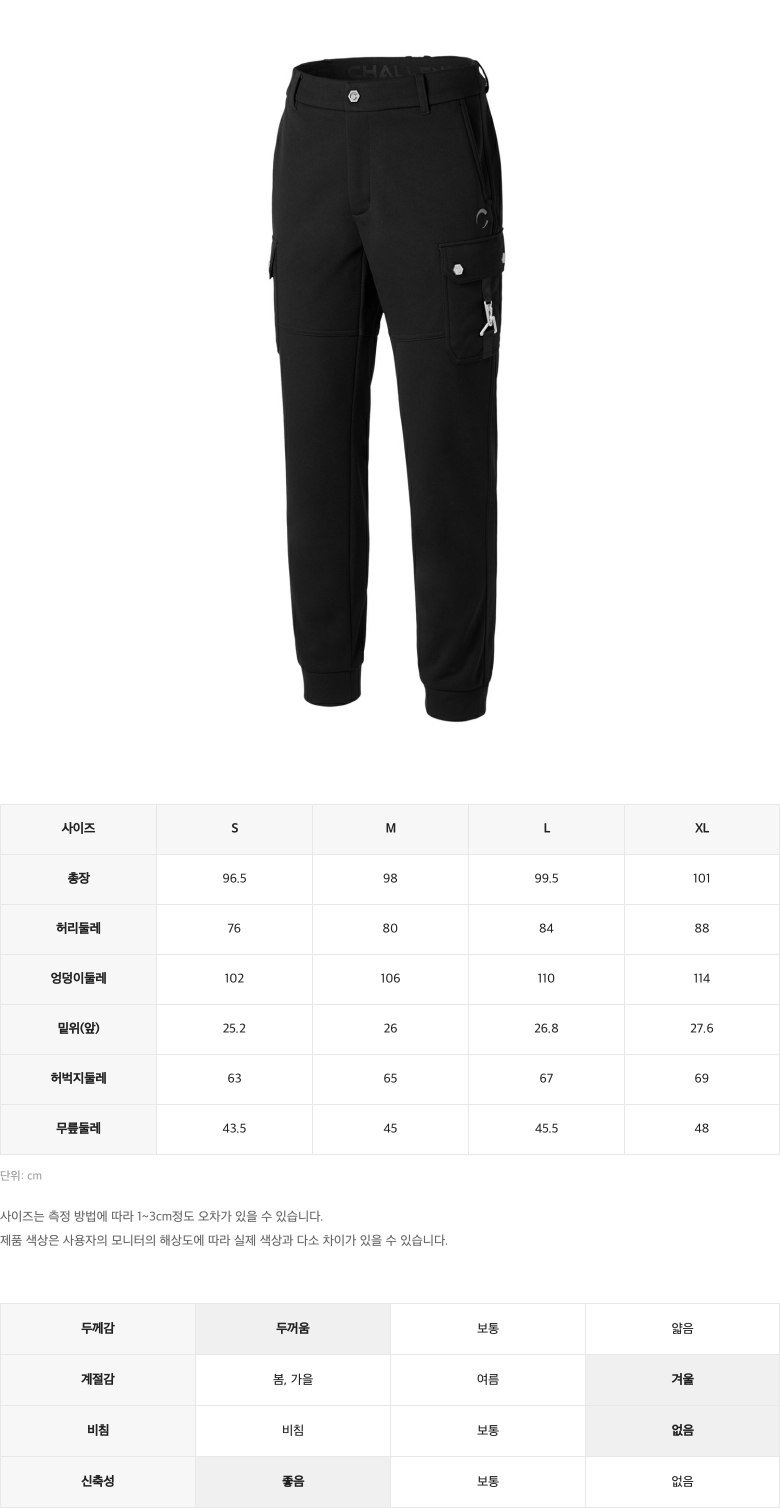 남성 트윌저지 밍크본딩안감 카고 조거 팬츠