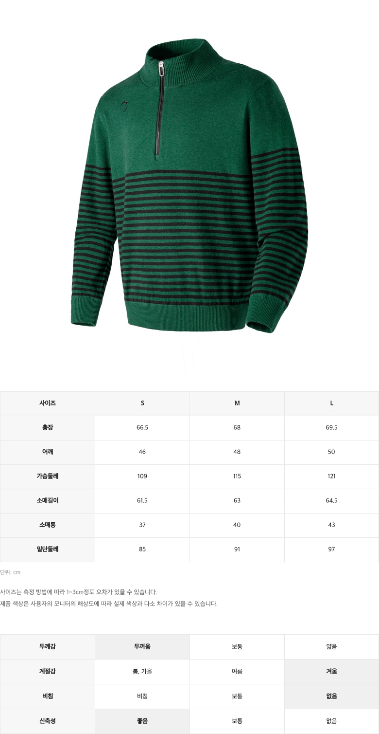 남성 스트라이프 반집업 방풍 니트풀오버 그린