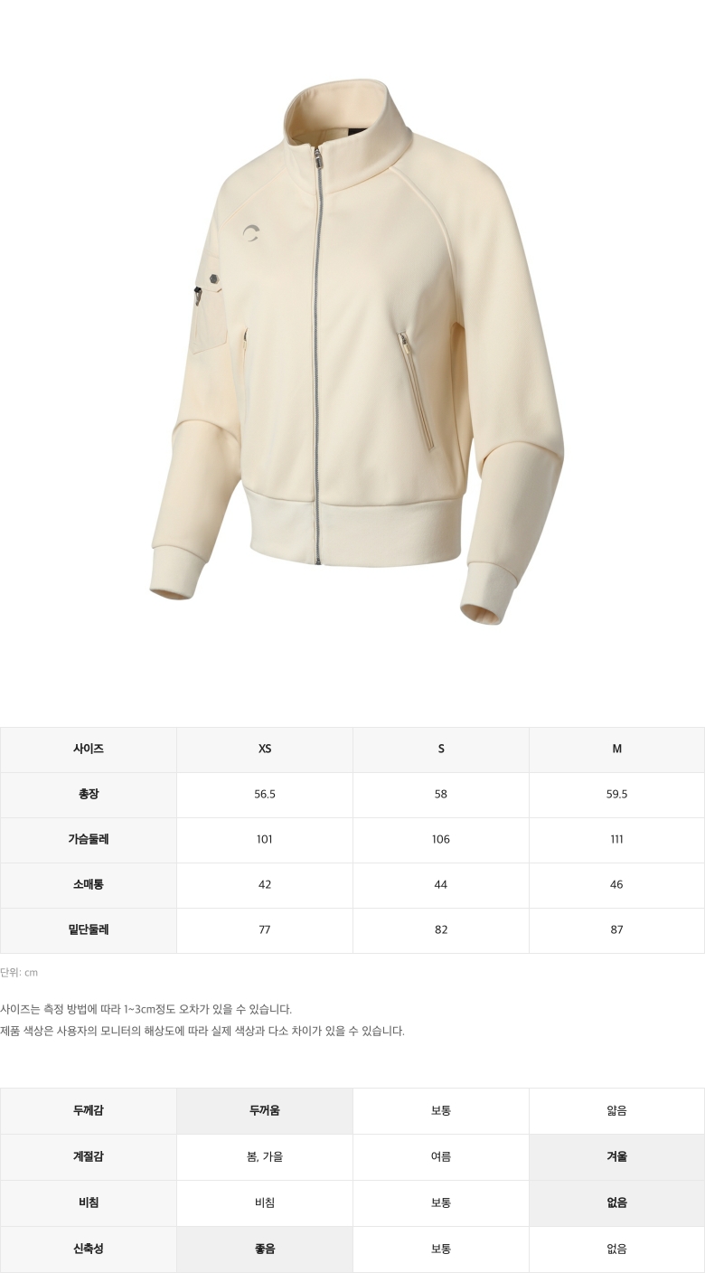 여성 트윌저지 밍크본딩안감 하이넥 자켓 크림