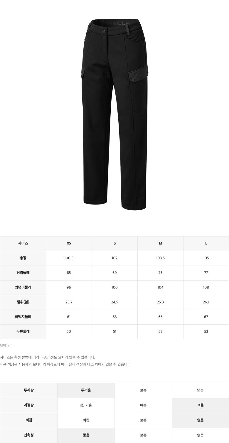 여성 트윌조직 밍크기모본딩 세미와이드 팬츠 블랙