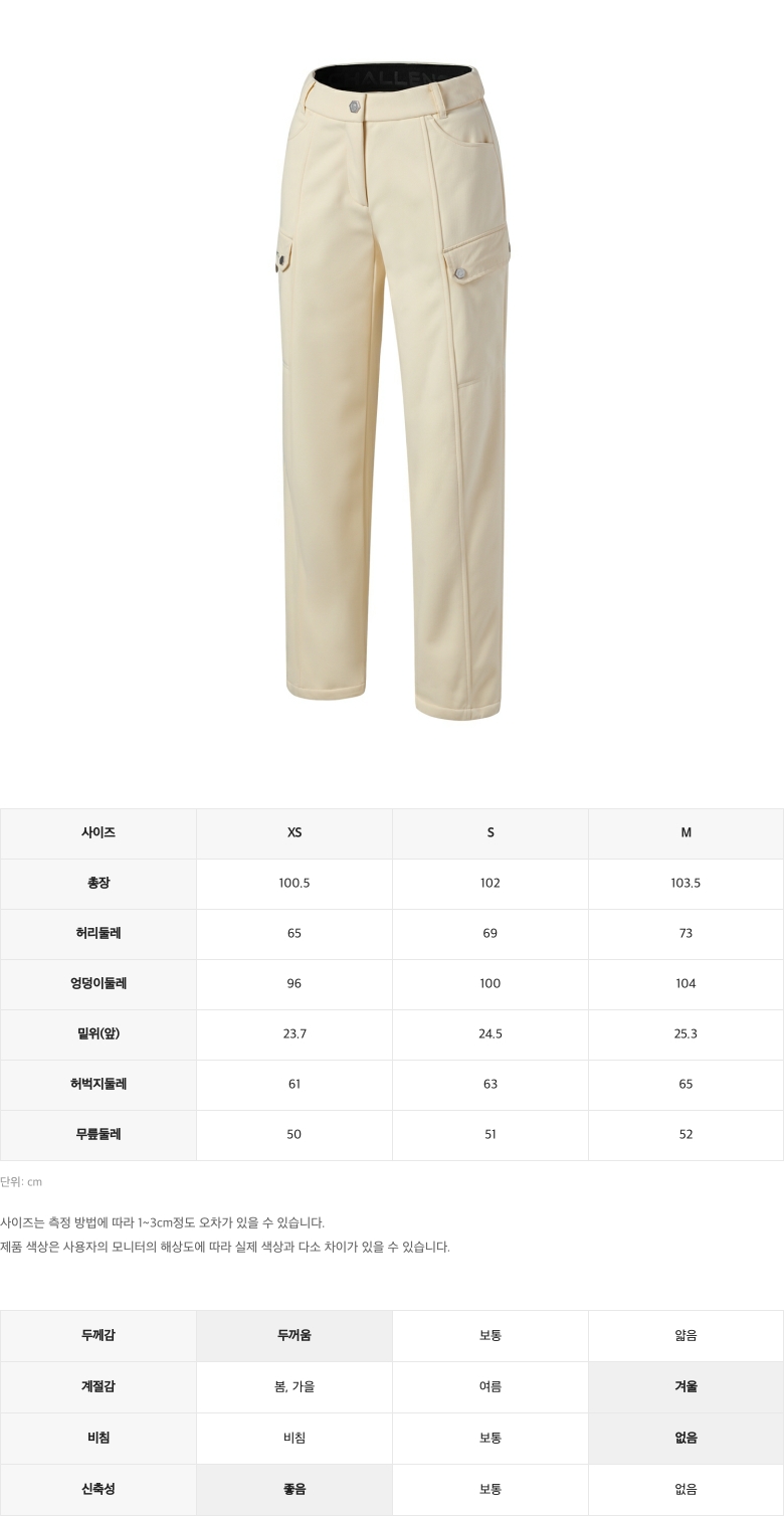 여성 트윌조직 밍크기모본딩 세미와이드 팬츠 크림