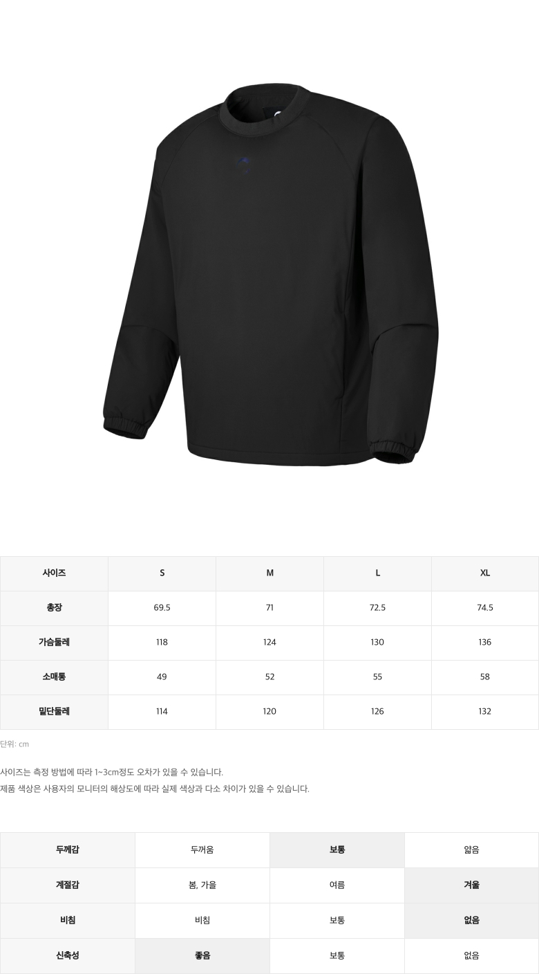 | 소재 | 겉감 : 폴리에스터 100% / 배색 : 폴리에스터 92%, 폴리우레탄 8% / 안감 : 폴리에스터 100% / 주머니감 : 폴리에스터 100% / 충전재 : 폴리에스터 100% |