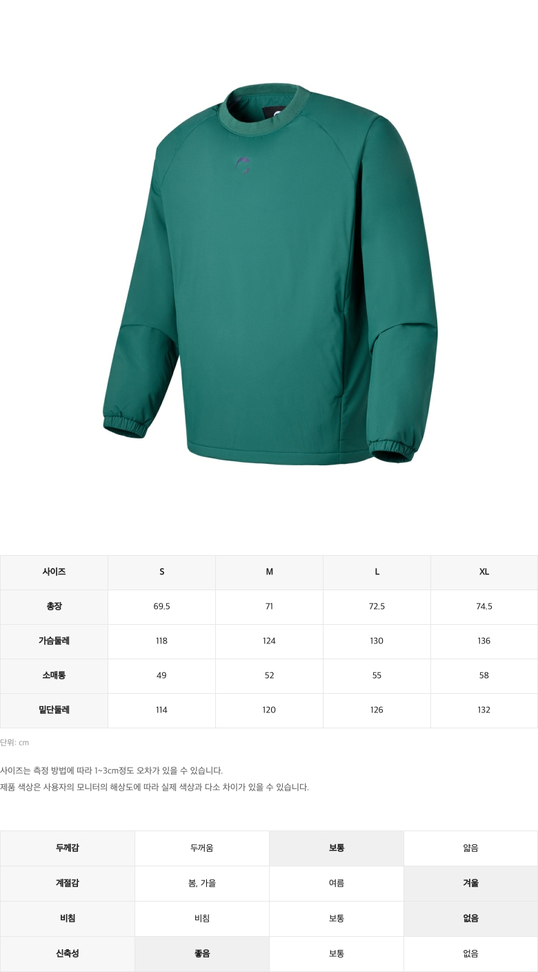| 소재 | 겉감 : 폴리에스터 100% / 배색 : 폴리에스터 92%, 폴리우레탄 8% / 안감 : 폴리에스터 100% / 주머니감 : 폴리에스터 100% / 충전재 : 폴리에스터 100% |