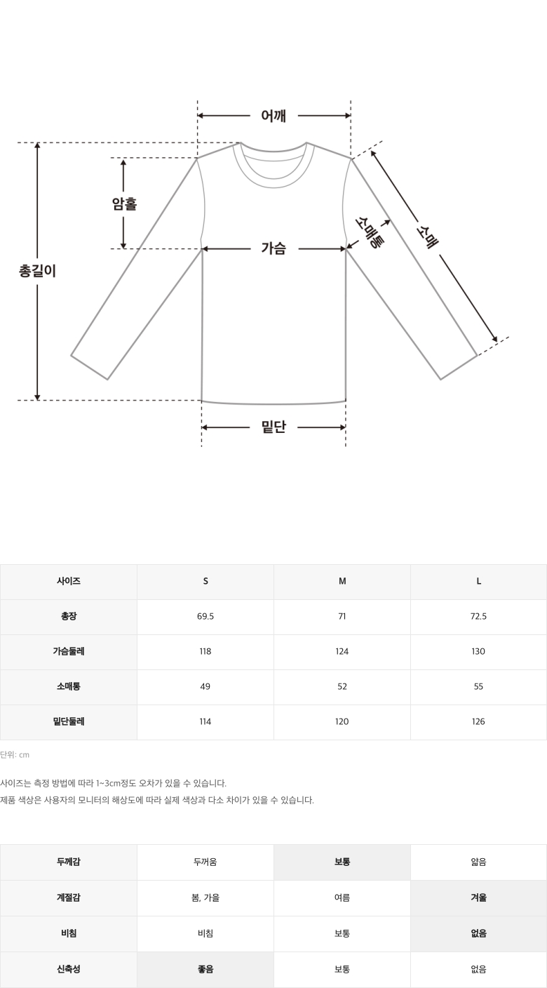 | 세탁방법 및 취급시 주의사항 | 약30℃ 중성세제 단독 손세탁/염소표백금지/옷걸이 그늘건조/다림질 금지/드라이금지/기계건조 금지/불꽃주의 |