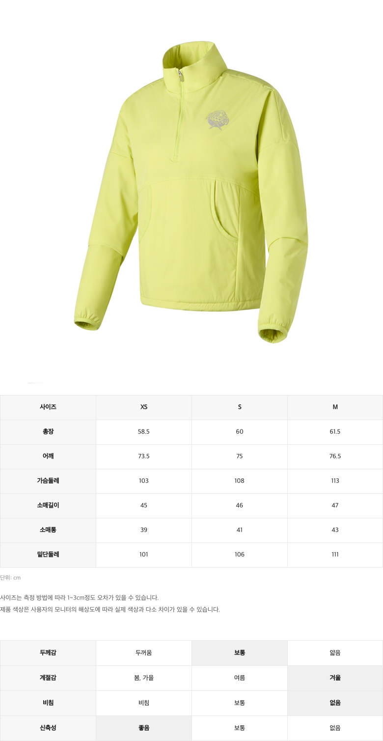 여성 드랍숄더 반집업 경량패딩 방풍 아노락 애플그린