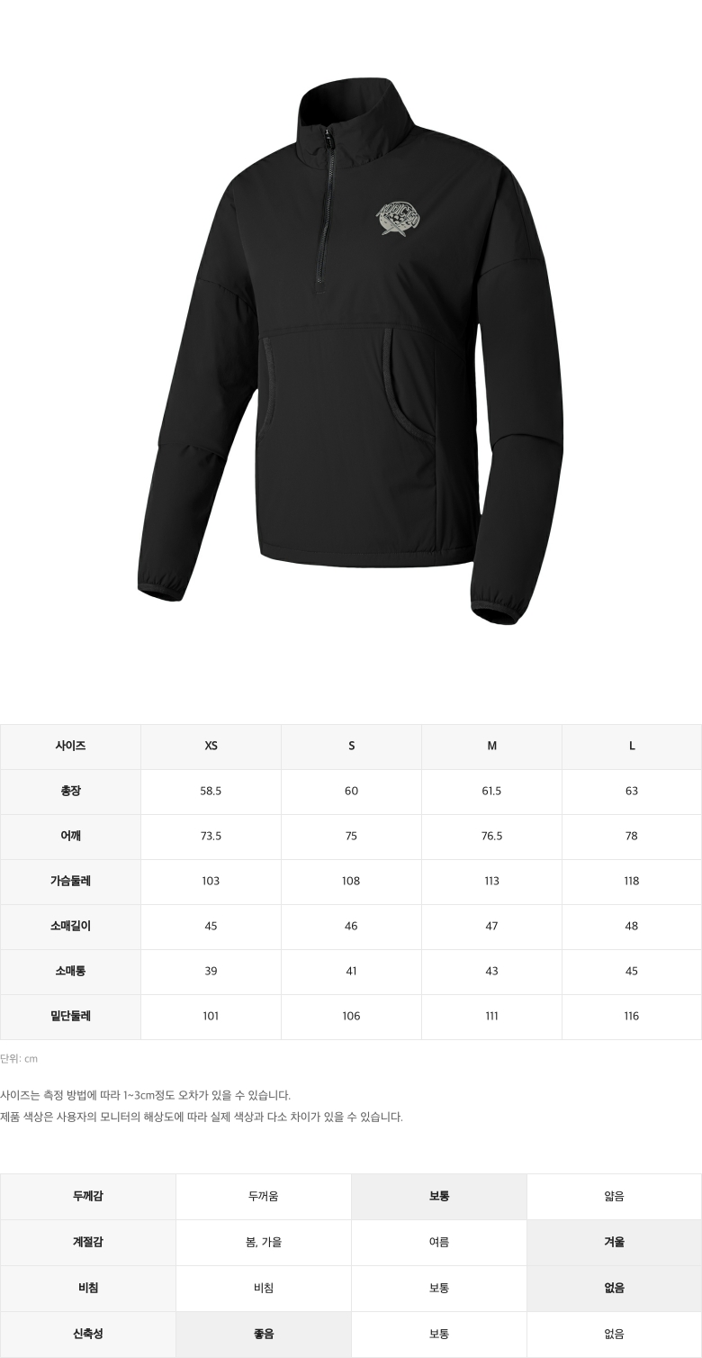여성 드랍숄더 반집업 경량패딩 방풍 아노락 블랙