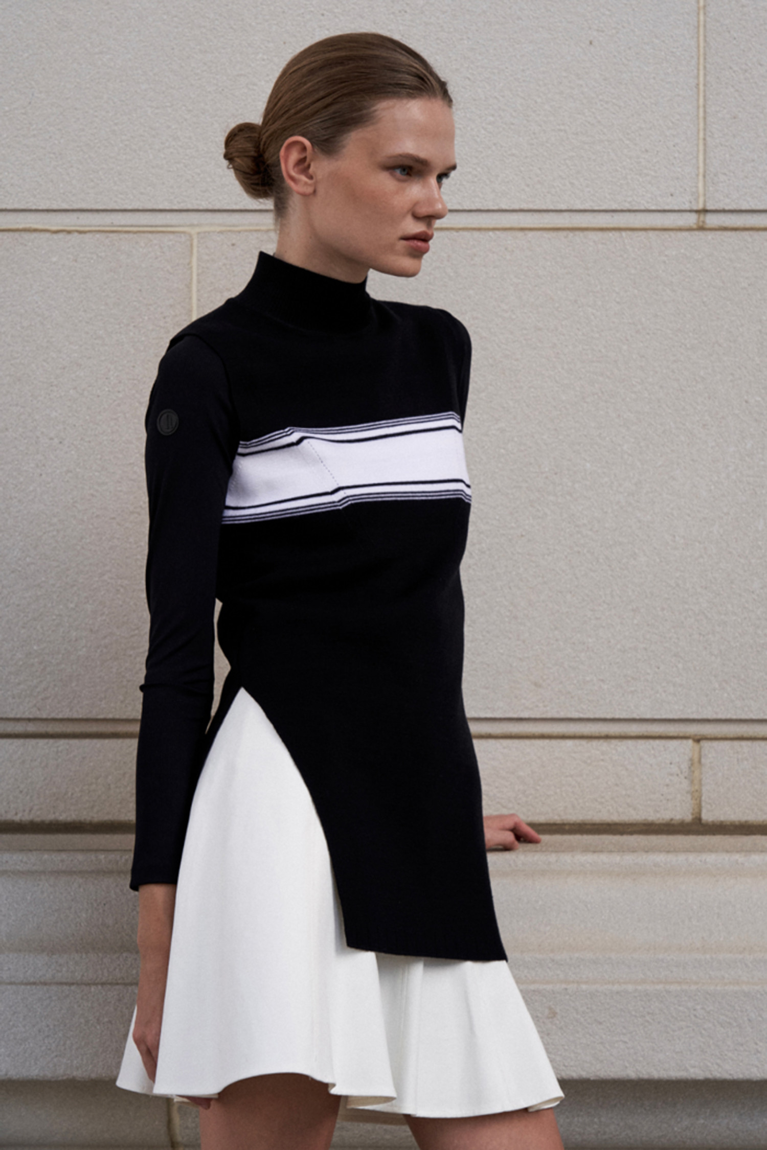 ㆍ세련된 배색 디자인의 아넬 시그니처 슬릿 니트 드레스