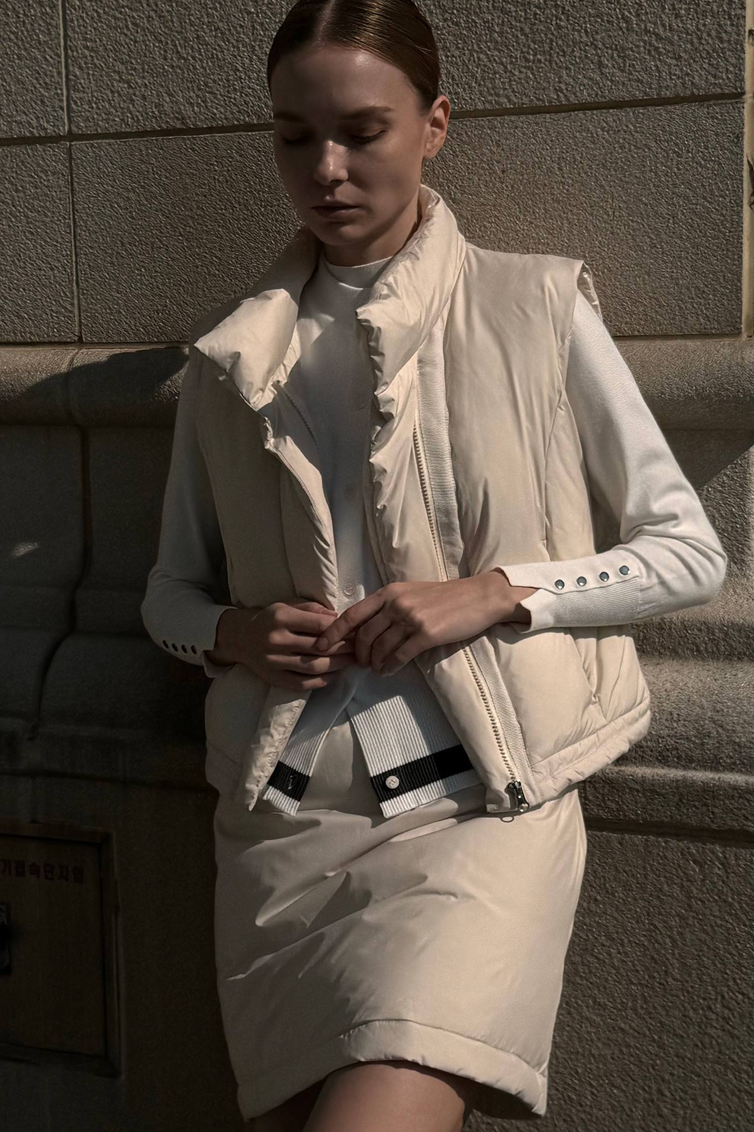 오리털 100%의 패딩 SET 스타일링이 가능한,
