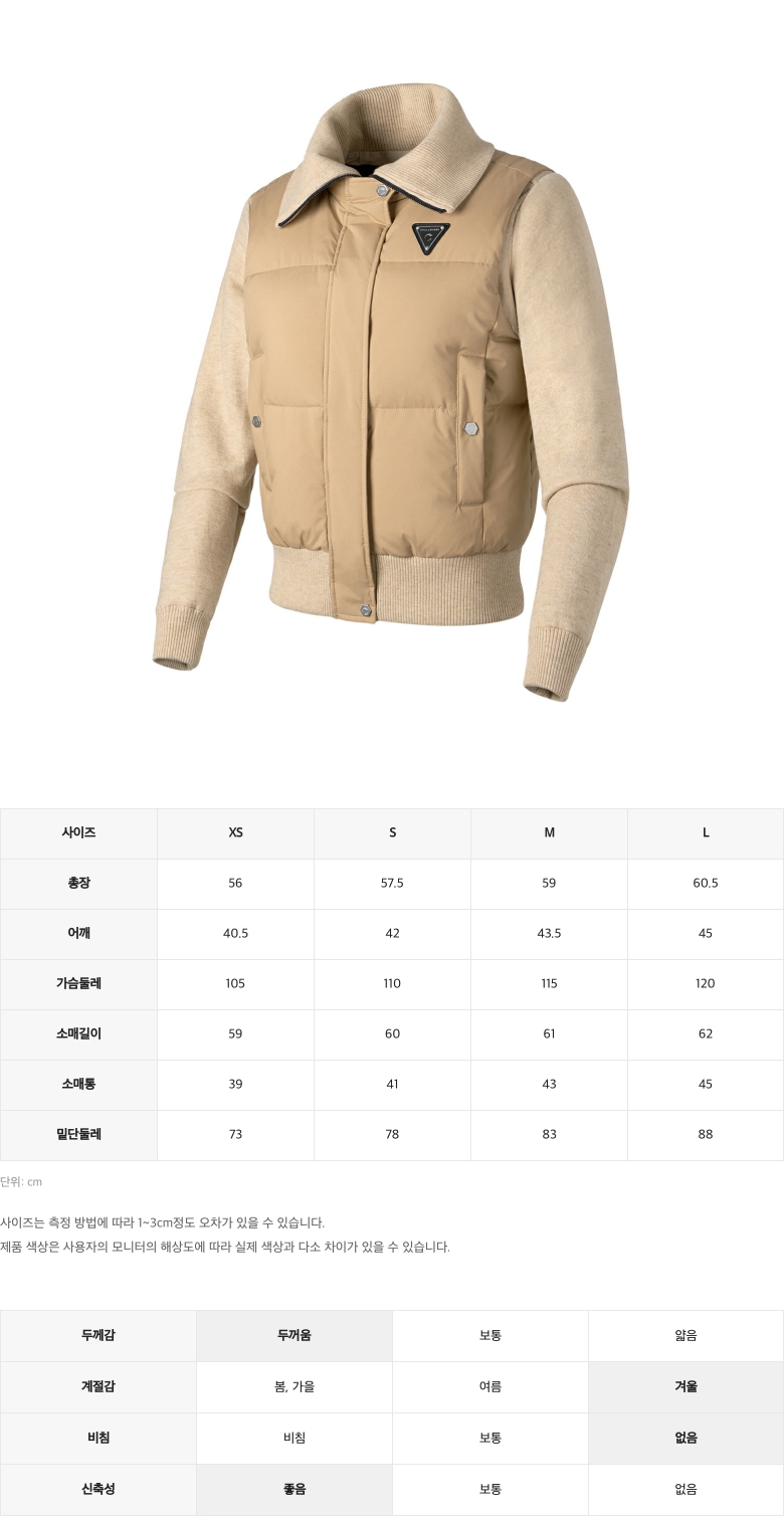 여성 레이어드형 구스다운 방풍니트 자켓 베이지