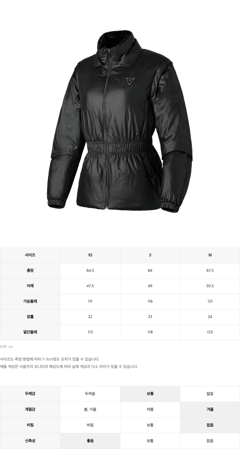 - 소매 탈부착으로 다양한 스타일 연출 가능