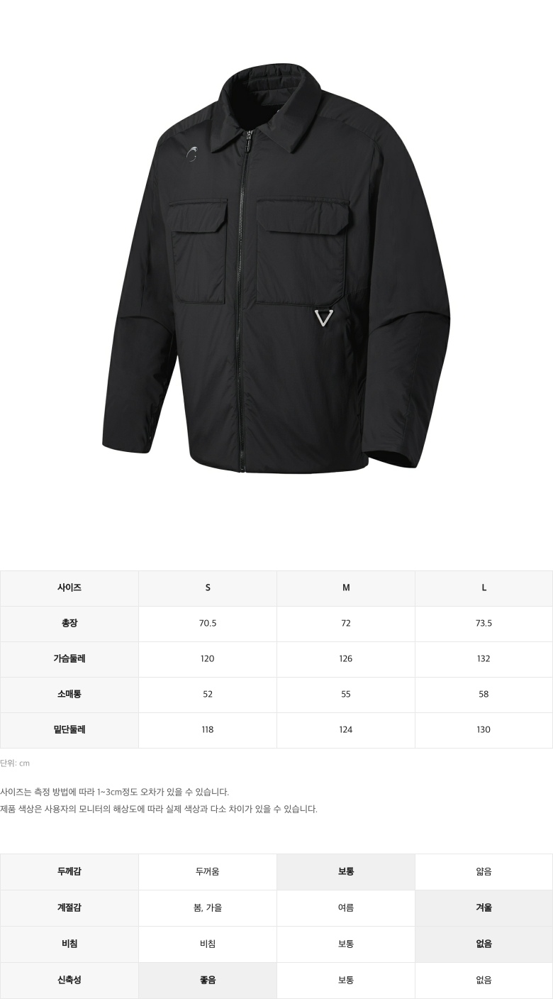 | 소재 | 겉감 : 나일론 96%, 폴리우레탄 4% / 안감 : 폴리에스터 100% / 주머니감 : 폴리에스터 100% / 충전재 : 폴리에스터 100% |