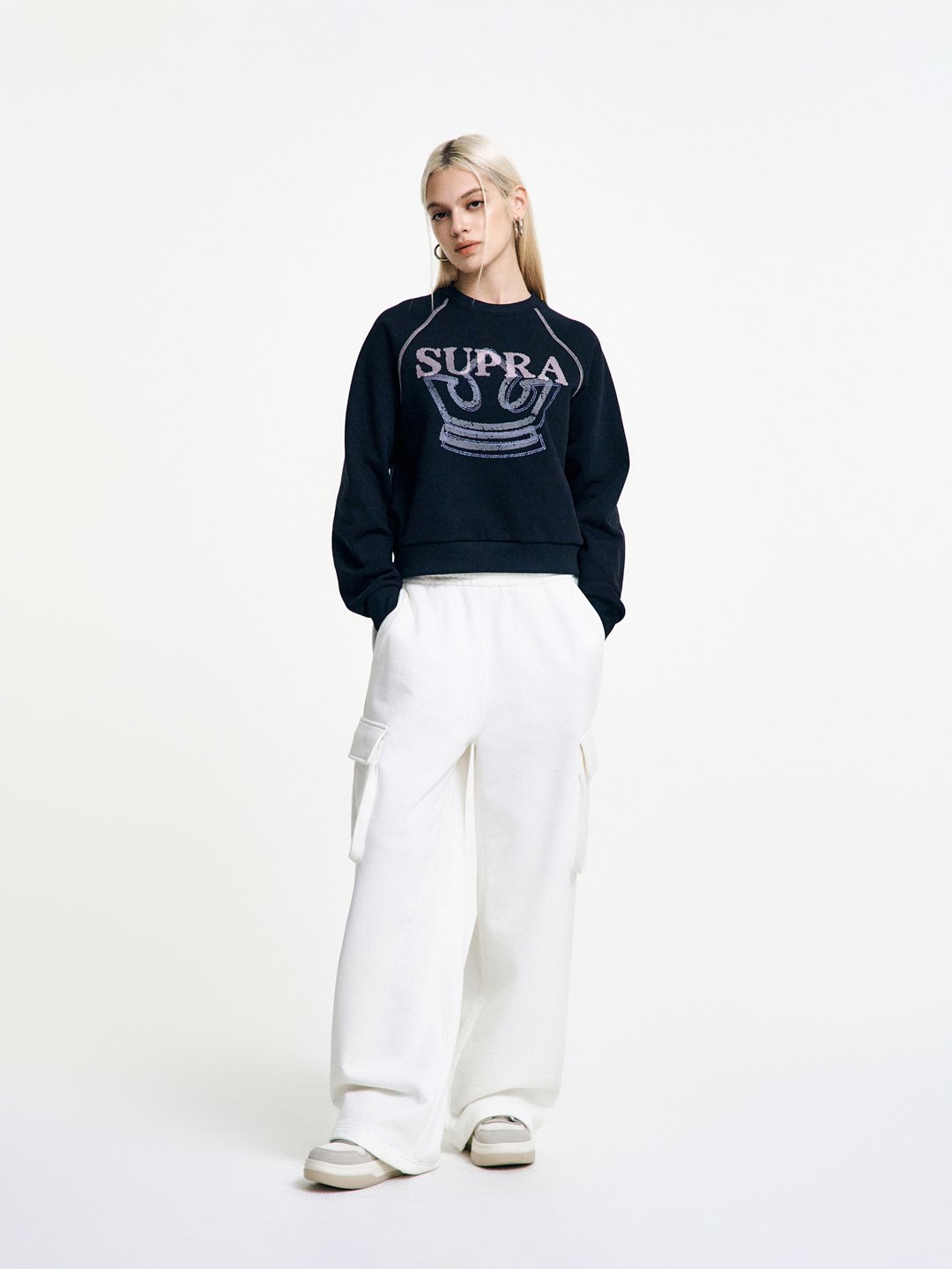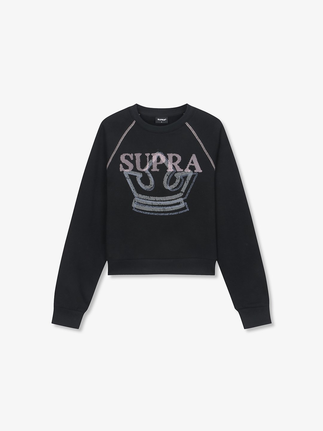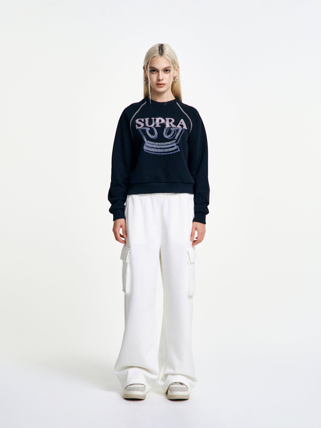 - 다양한 코디에 활용 가능한 크라운 로고 그래픽 여성 크롭 맨투맨