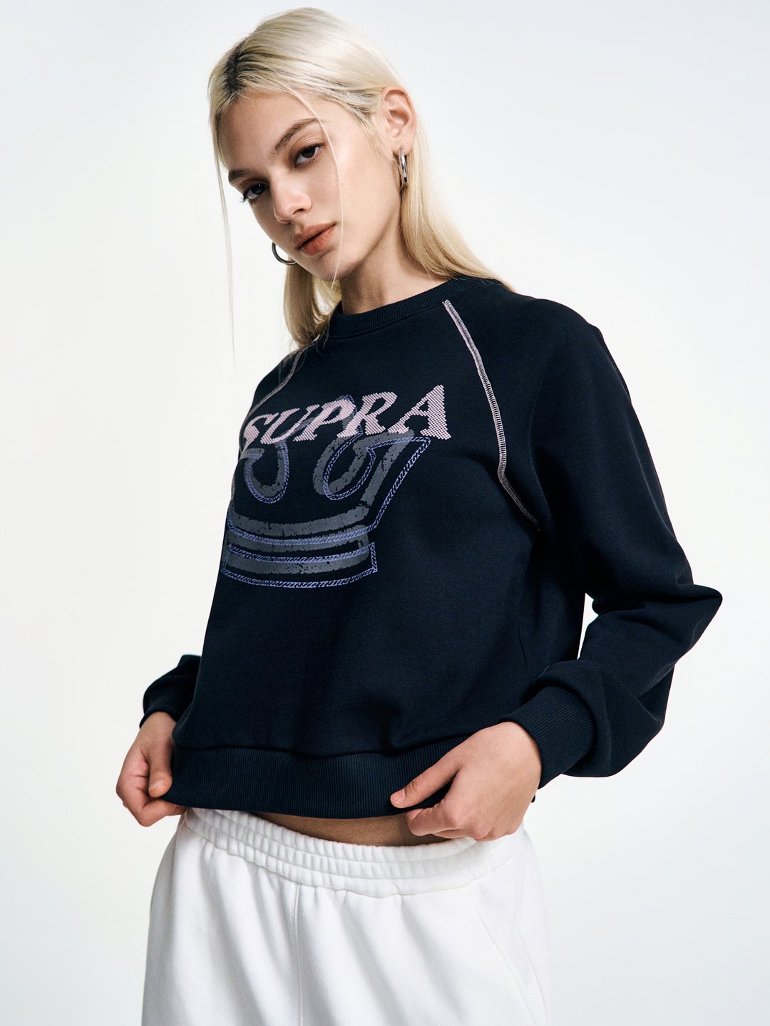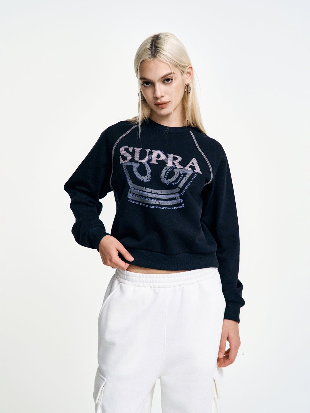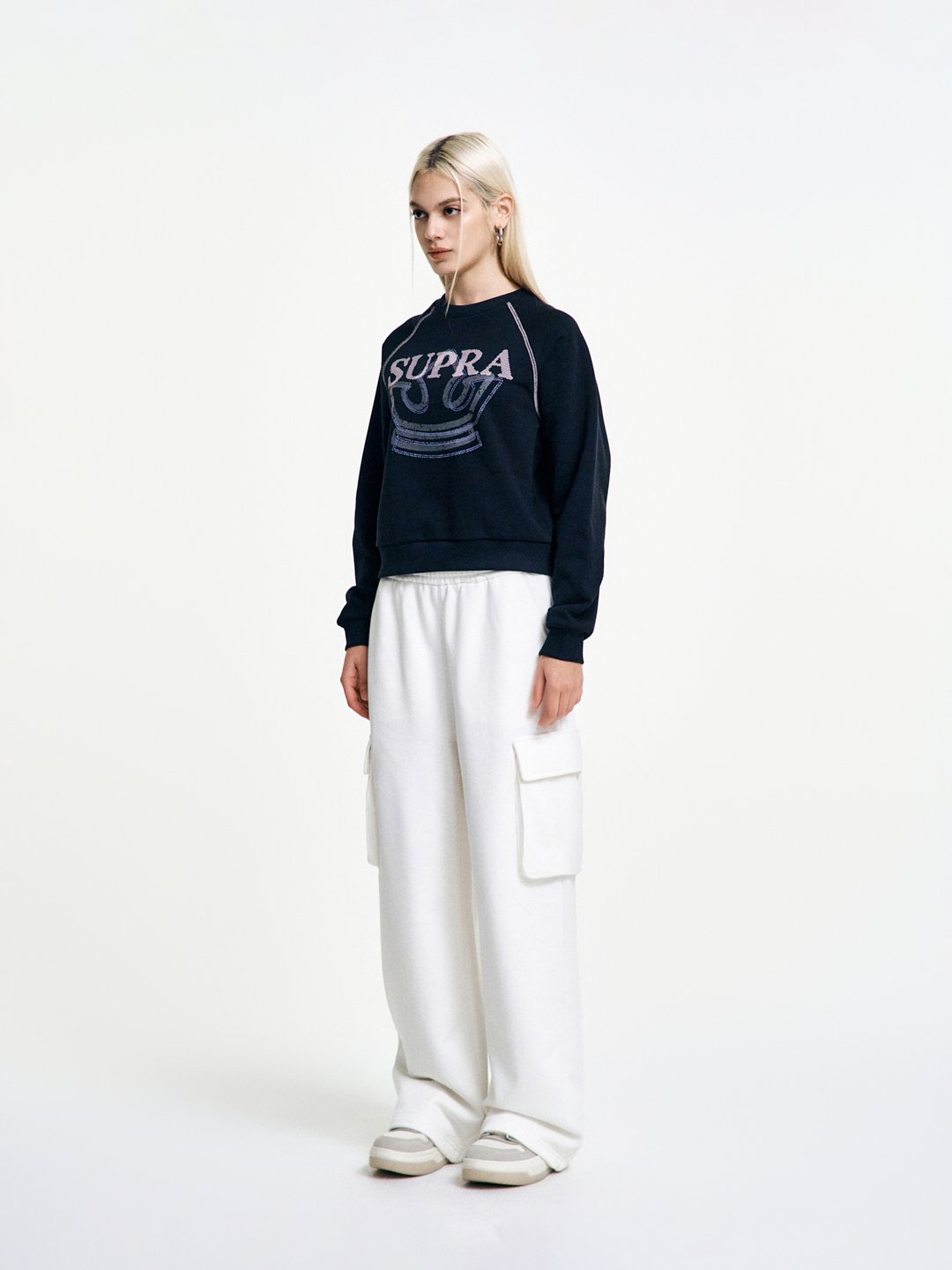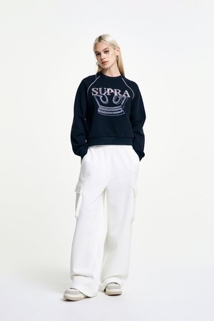 - 다양한 코디에 활용 가능한 크라운 로고 그래픽 여성 크롭 맨투맨