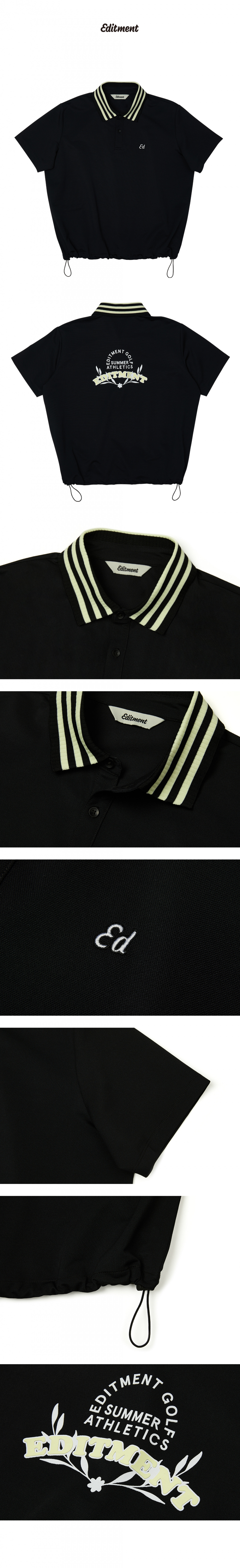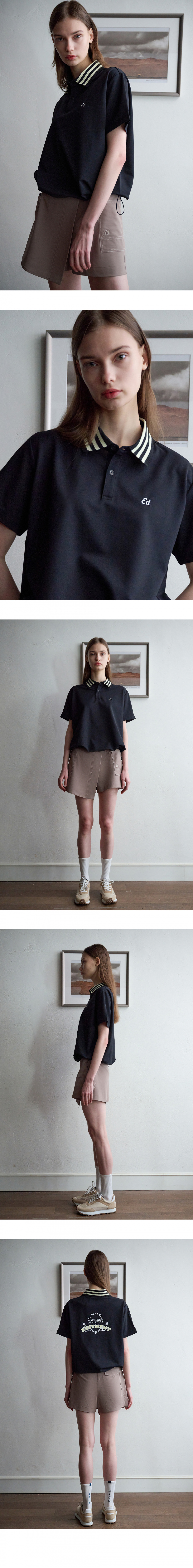 Womens Pique Polo Stripe Sporty Shirts (BLACK)