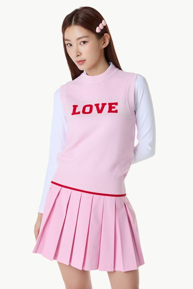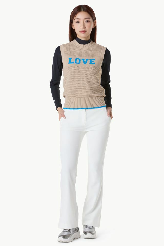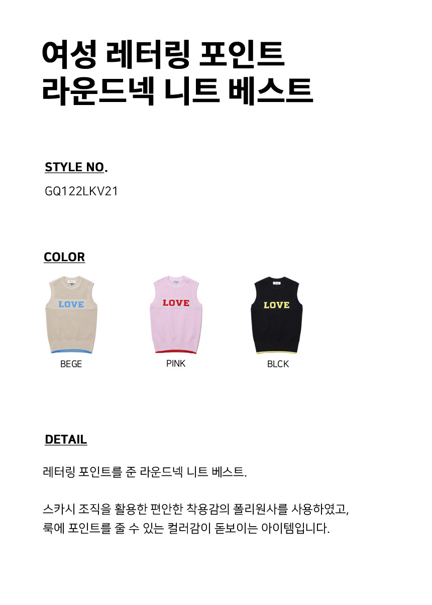 여성 레터링 포인트 라운드넥 니트 베스트 (GQ122LKV21)