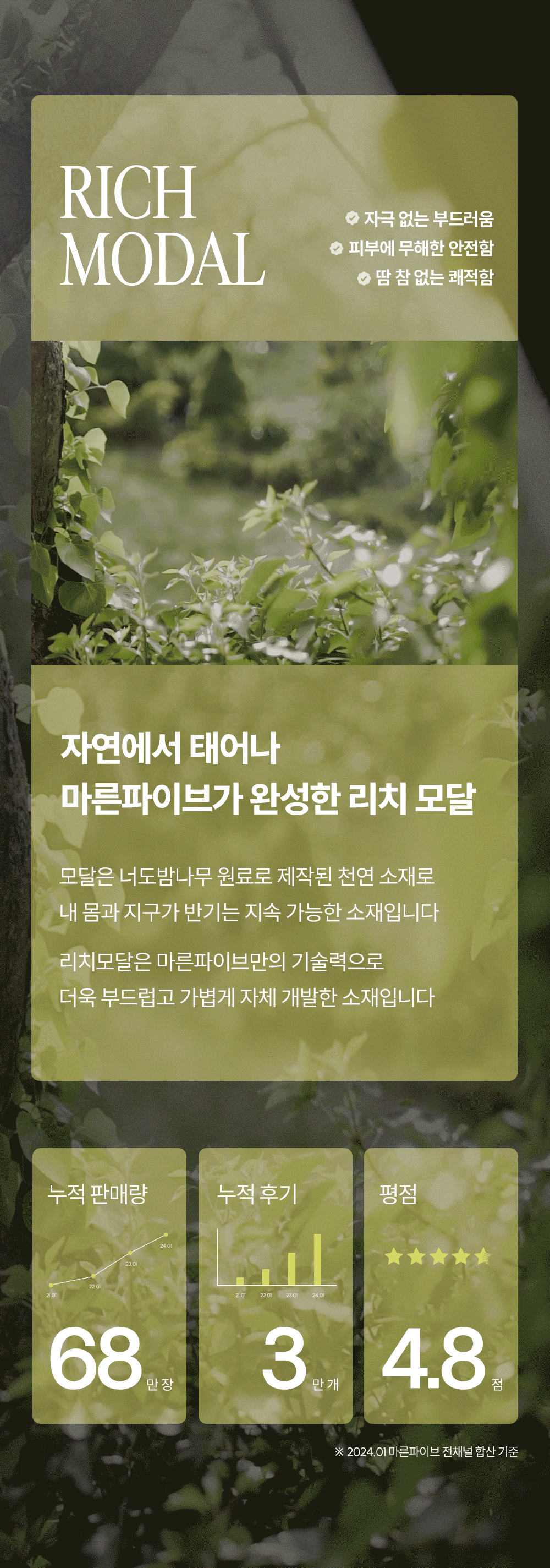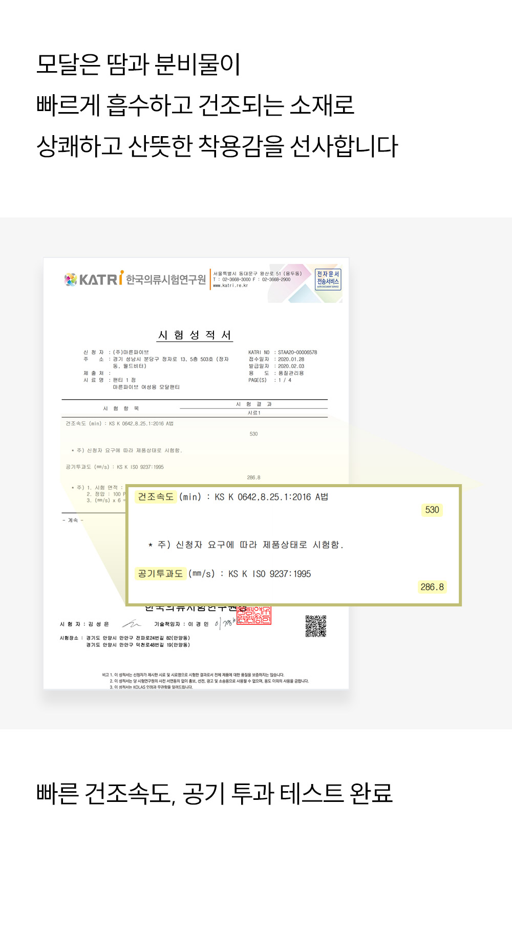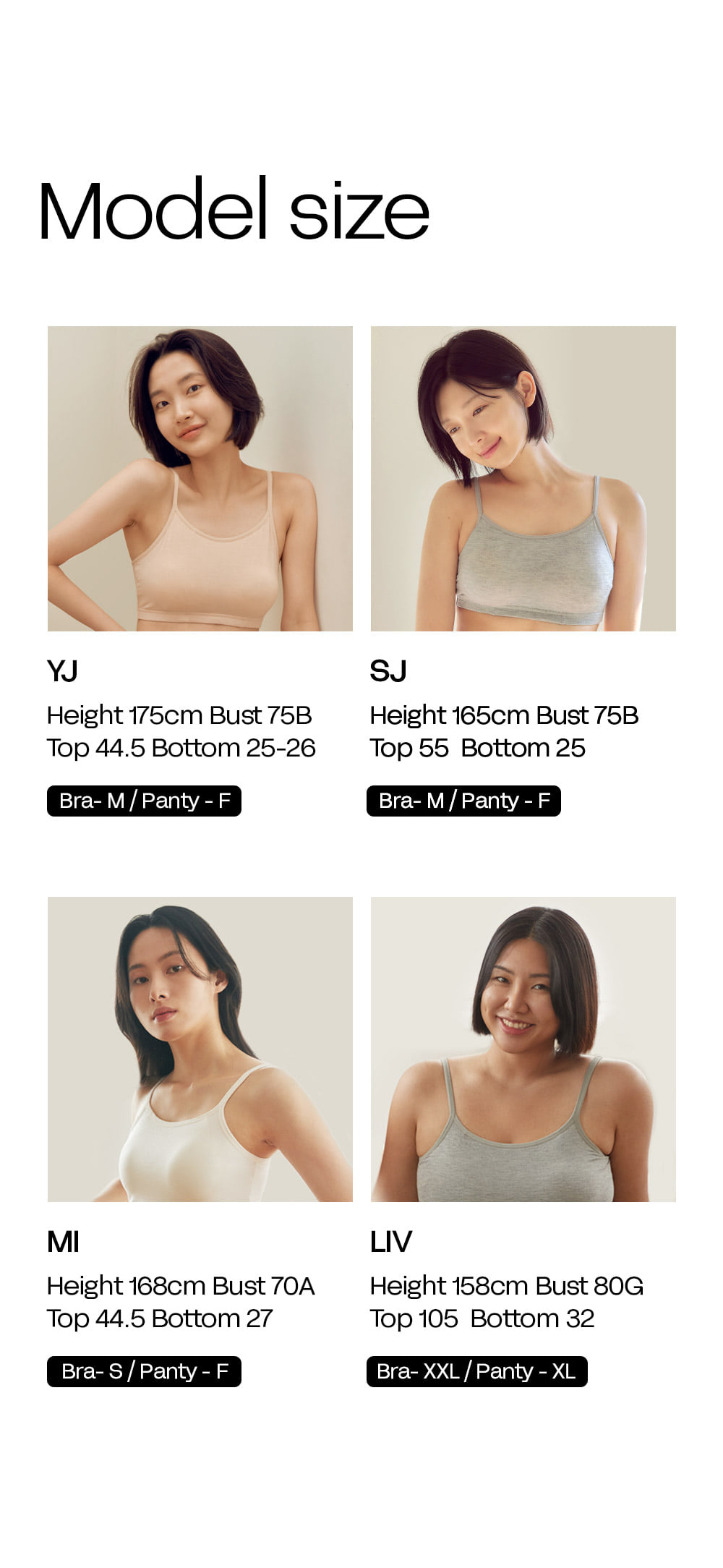 | 소재 | 브라: 모달95%, 스판덱스 5% 팬티: 92%, 스판덱스 8% |