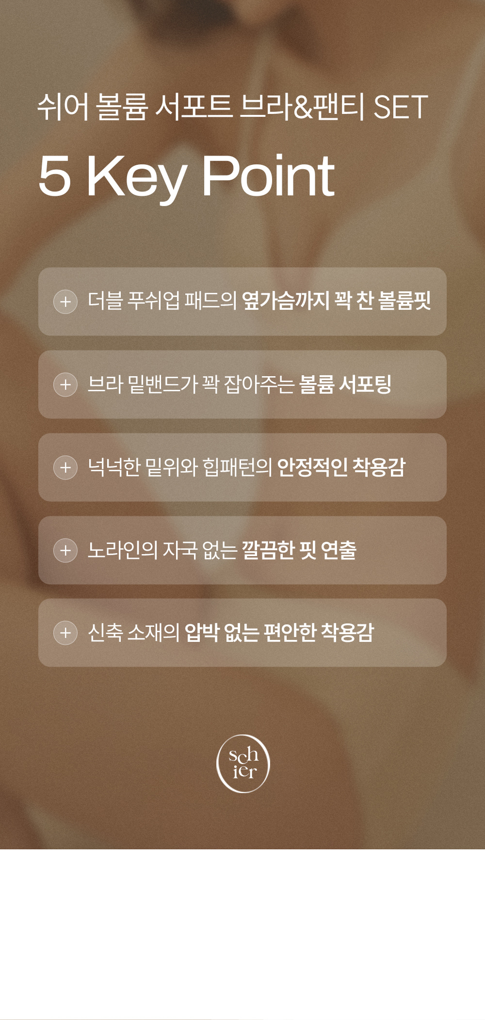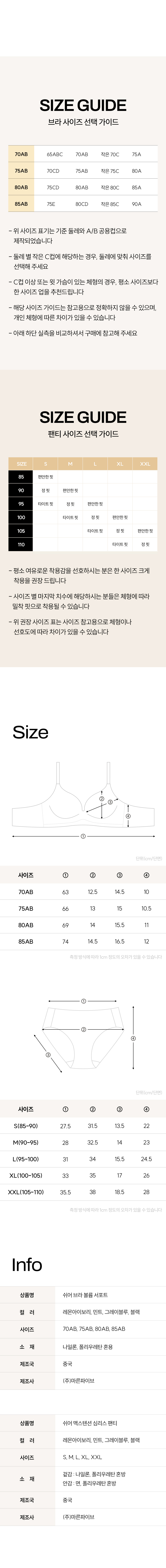 | 치수 | 브라: 70AB, 75AB, 80AB, 85AB 팬티: S, M, L, XL, 2XL |