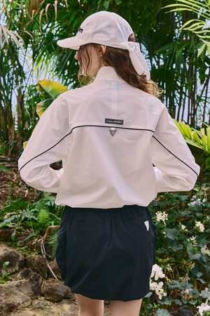 여성 디테일 변형 반집업 하이넥 우븐탑 화이트