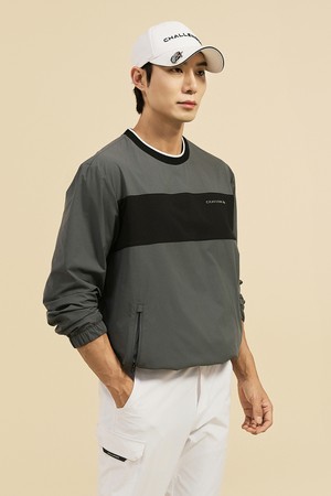 Men's Contrast Panel Round-Neck Woven Top 남성 폴리 배색 라운드넥 우븐탑