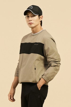 Men's Contrast Panel Round-Neck Woven Top 남성 폴리 배색 라운드넥 우븐탑