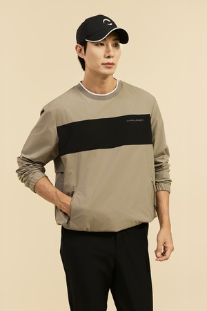 남성 폴리 배색 라운드넥 우븐탑 베이지