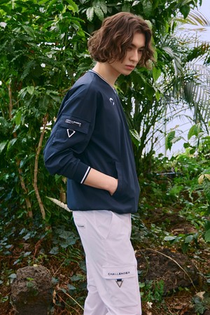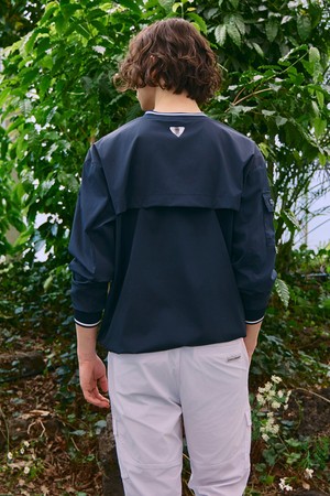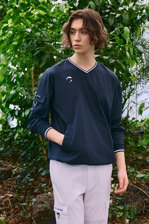 남성 나일론 스트레치 배색 V넥 우븐탑 네이비