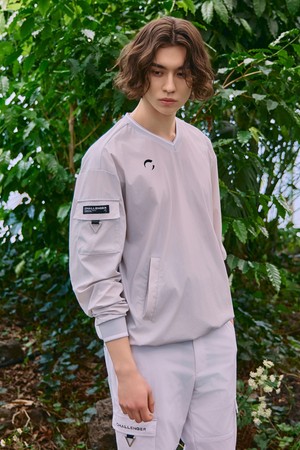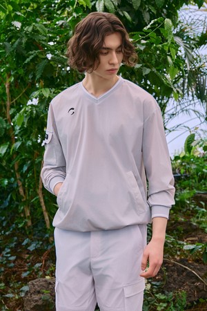 남성 나일론 스트레치 배색 V넥 우븐탑 라이트그레이