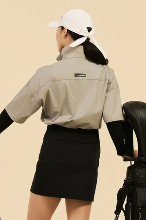 여성 하이넥 반팔 풀집업 윈드브레이커 카키베이지