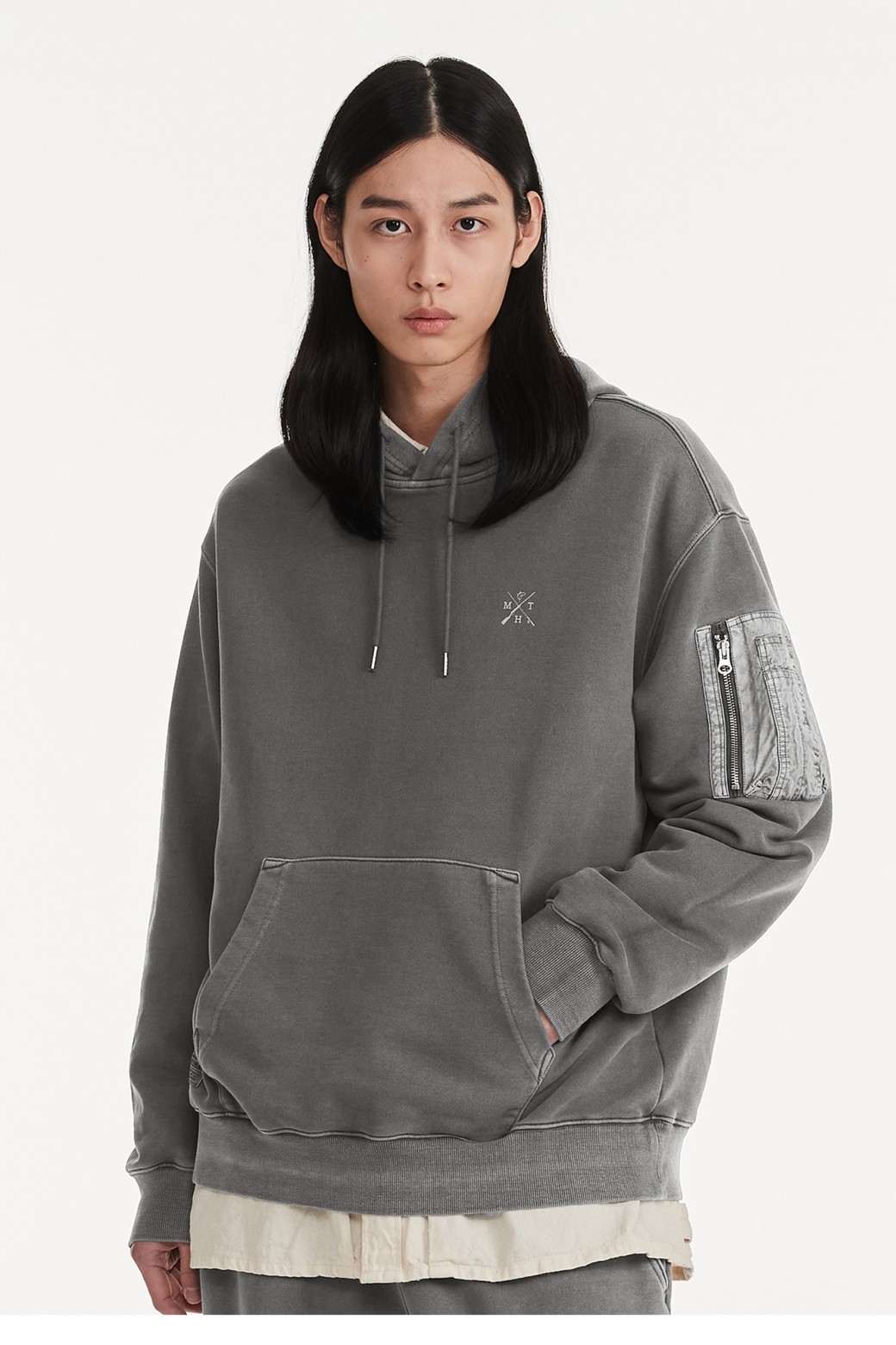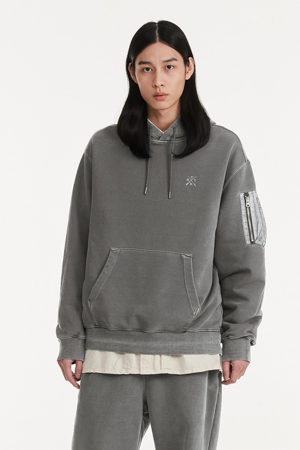 [힐리먼트] 지퍼포켓 피그먼트 후드 (GREY)