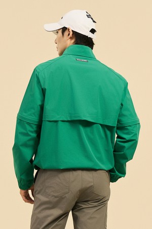 남성 나일론 스트레치 소매 탈부착 라운드넥 우븐탑 그린