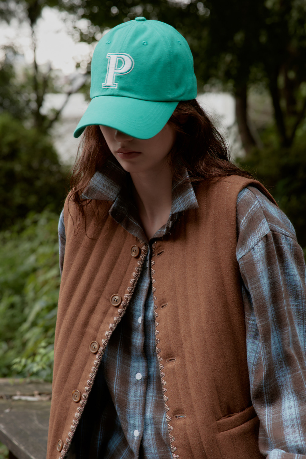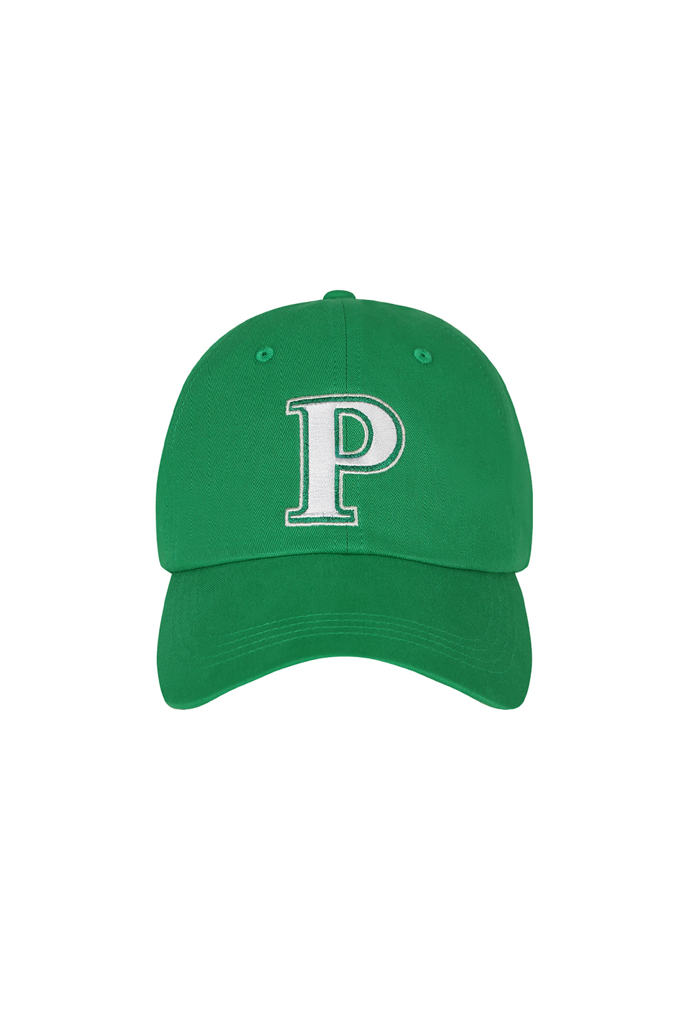 전면부에 P 자수와 후면부에 로고 자수로 포인트를 준 볼캡입니다.