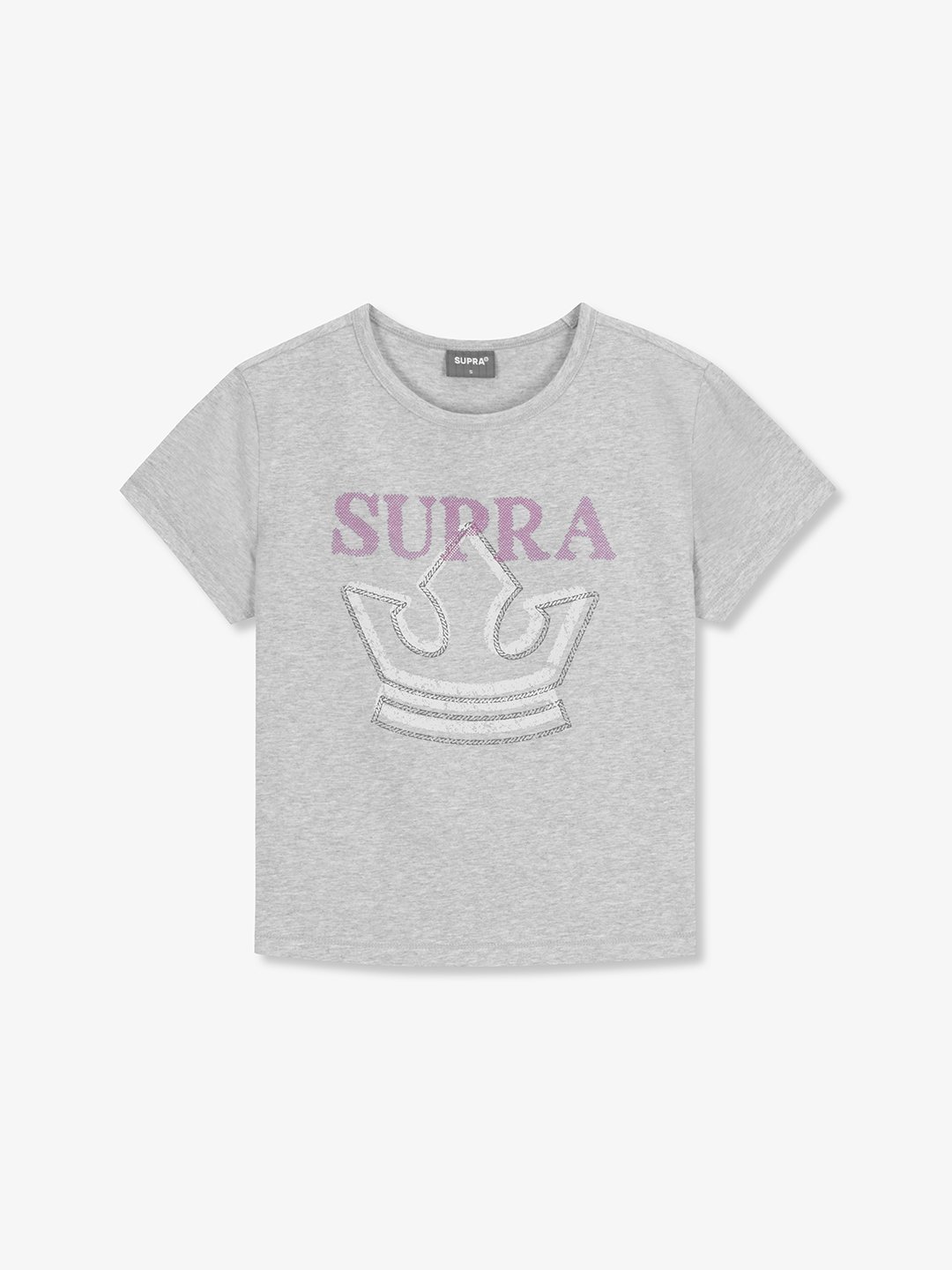 - 컬러풀한 오버랩 크라운 프린트가 포인트인 반팔 티셔츠