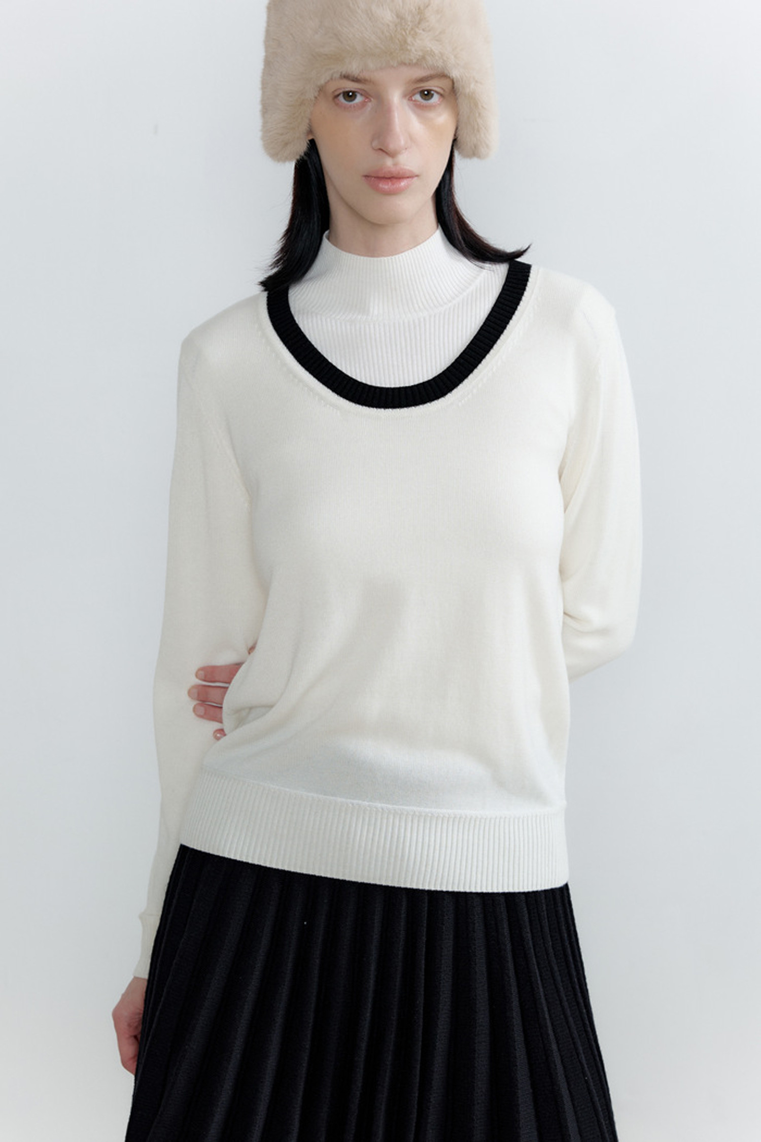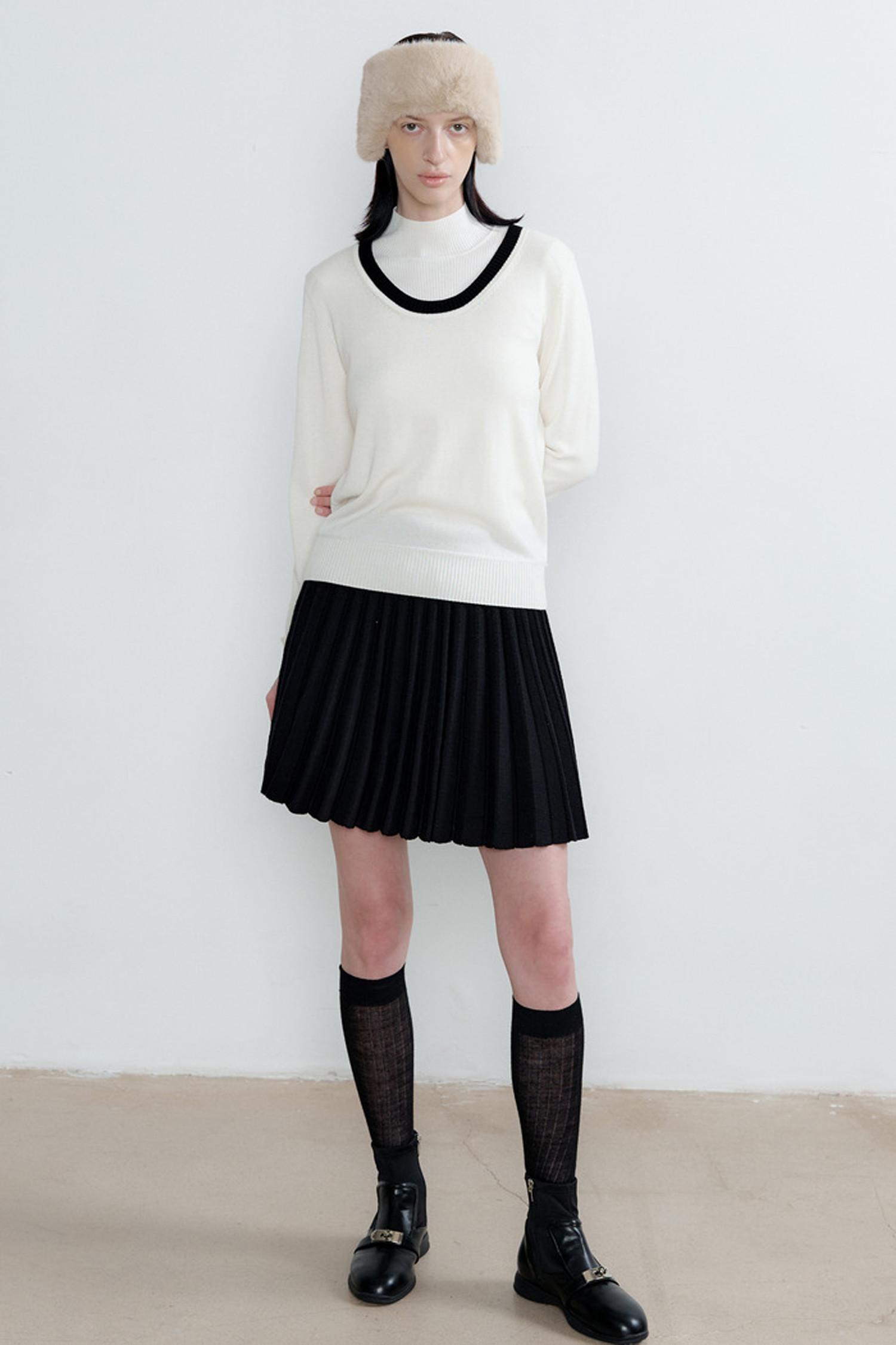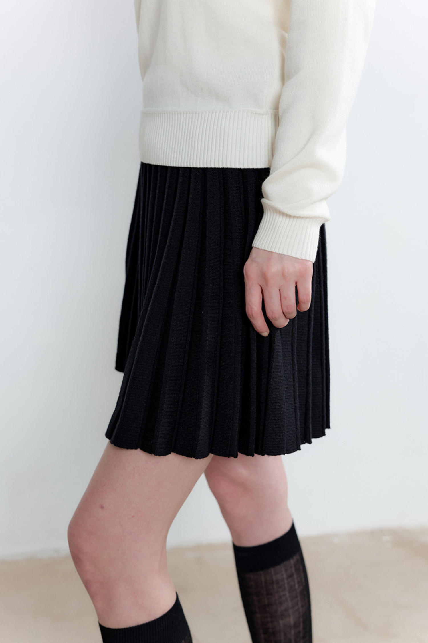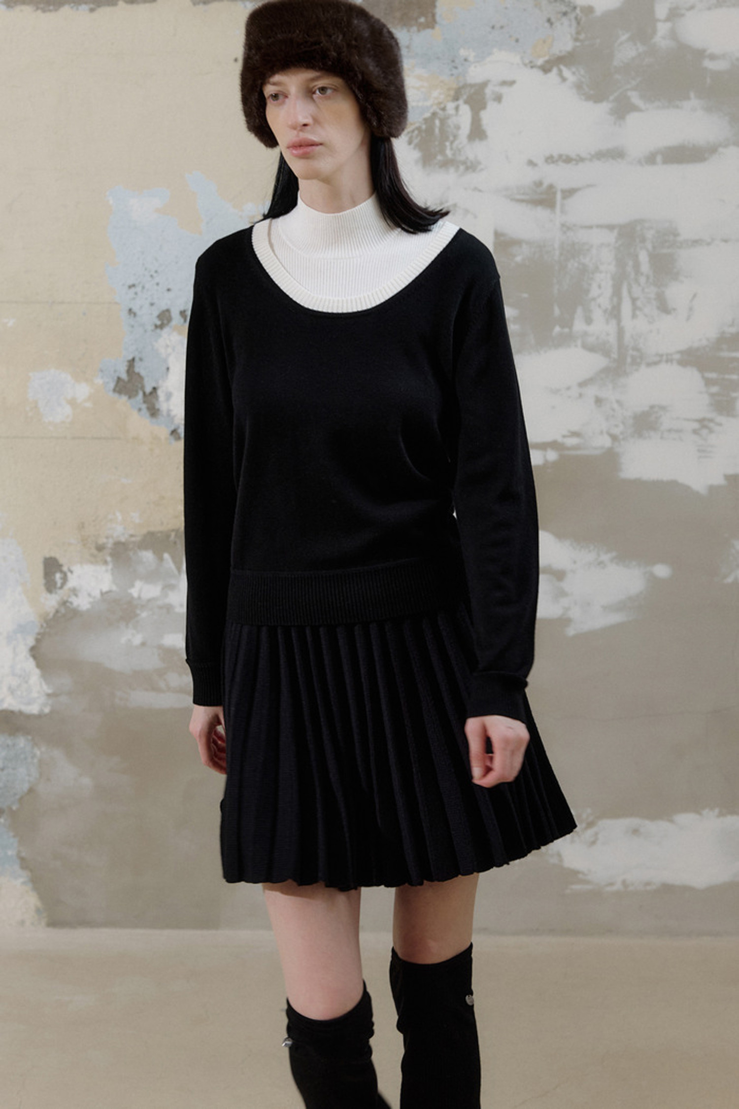 따뜻한 니트 소재와 플리츠 디테일로