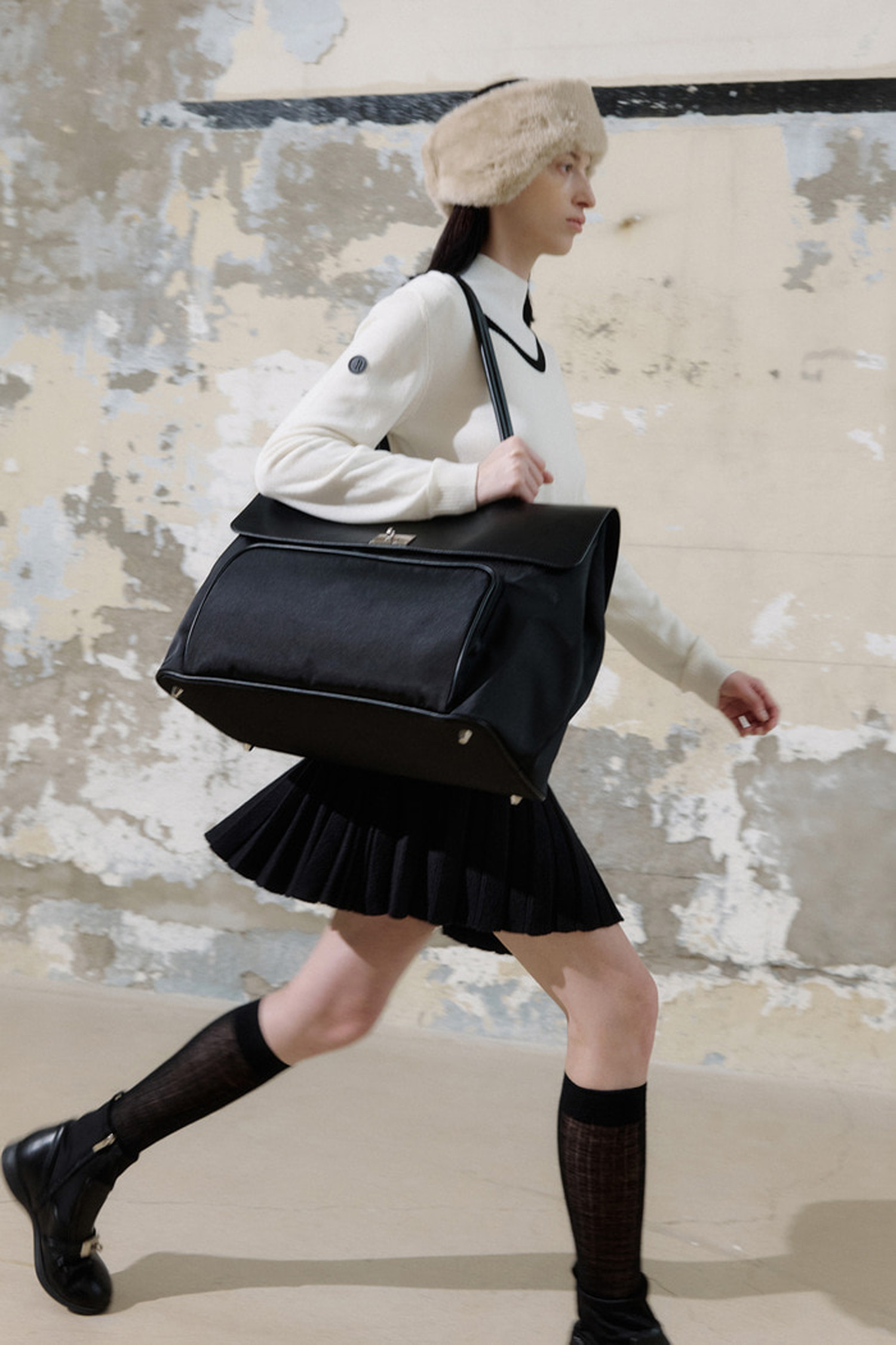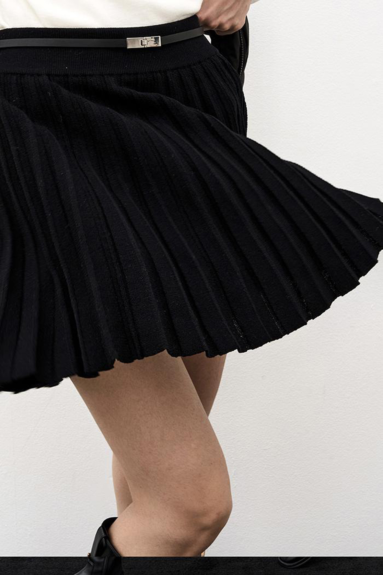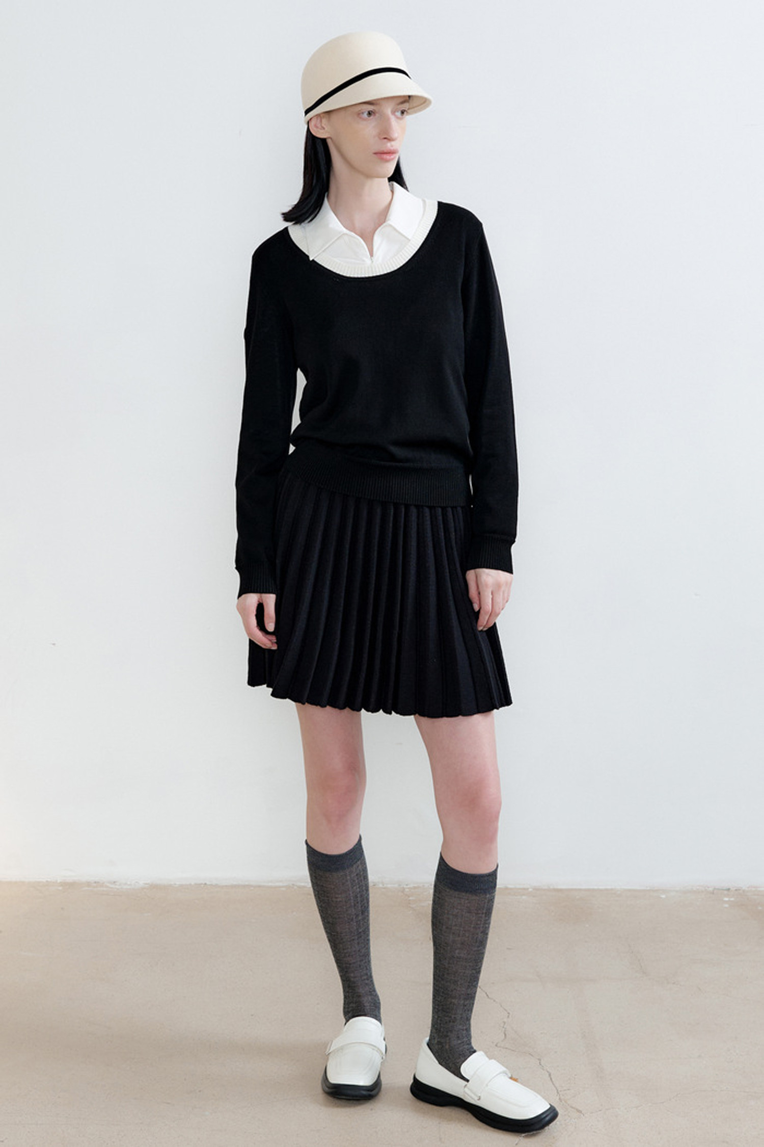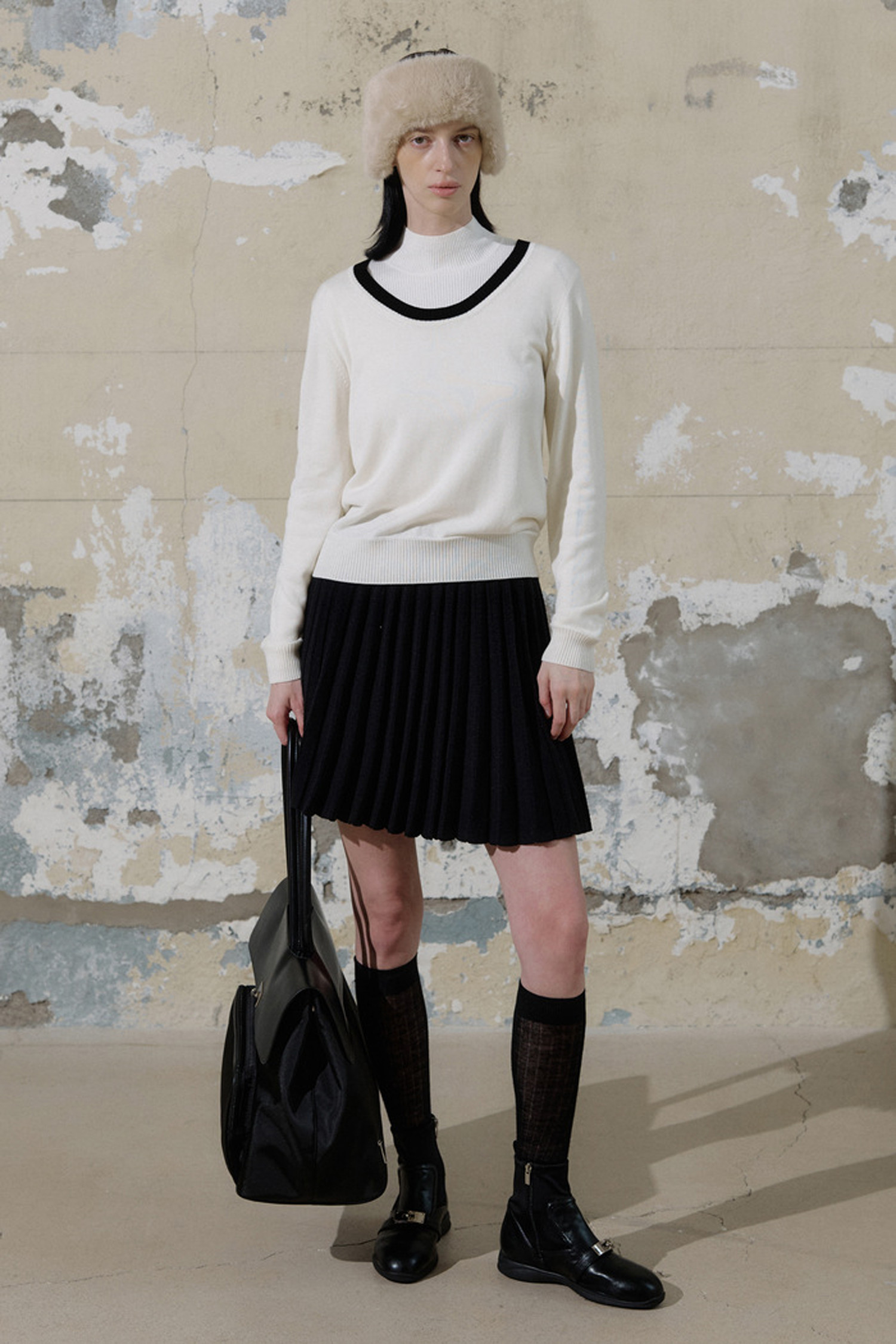 따뜻한 니트 소재와 플리츠 디테일로