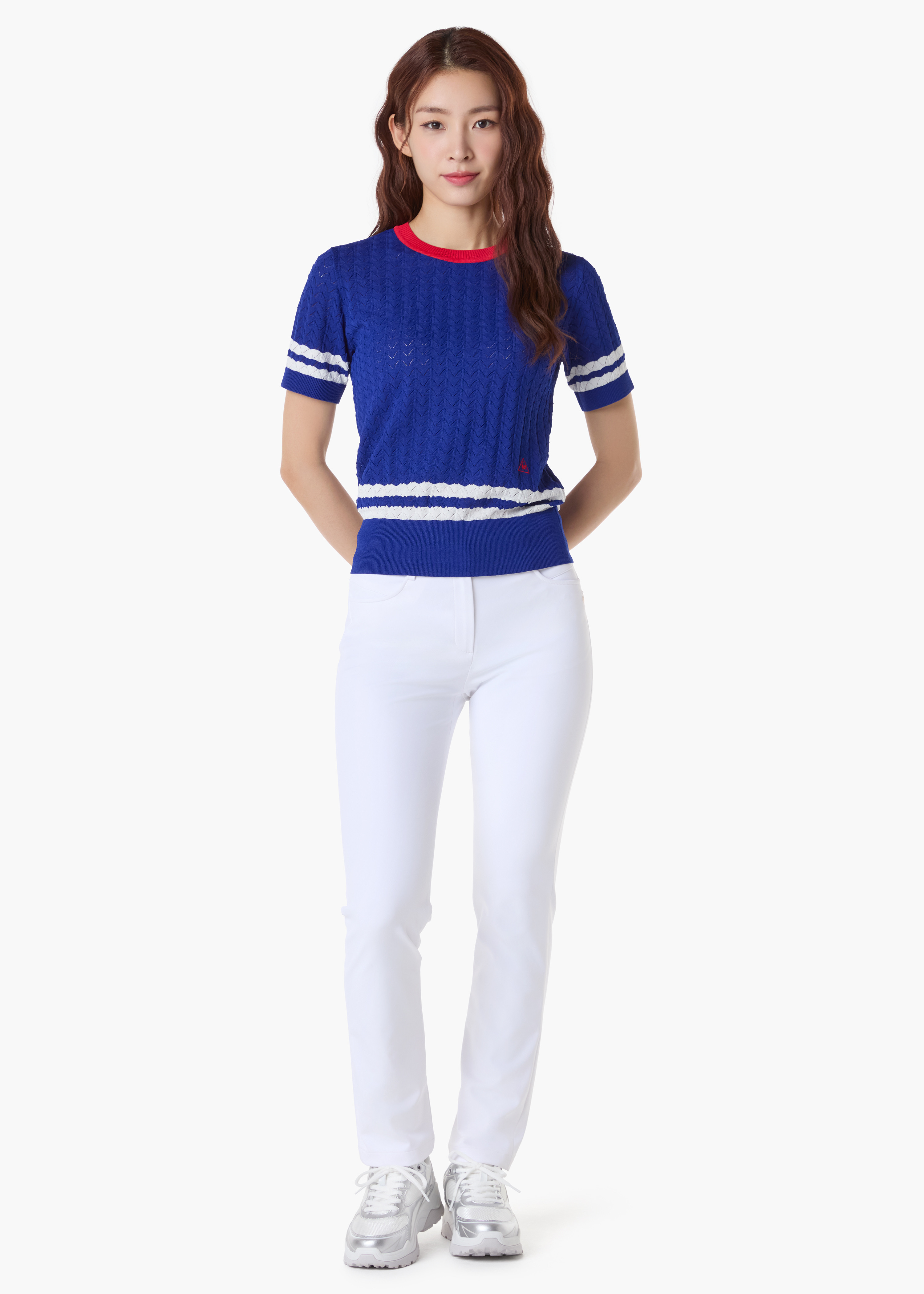 여성 스카시 조직 반팔 스웨터 (GQ122LKP31)