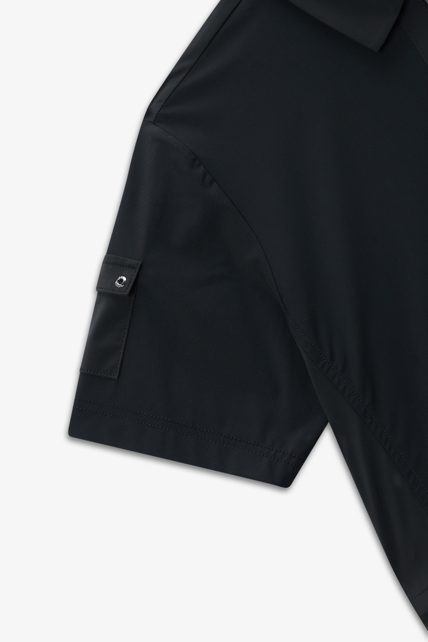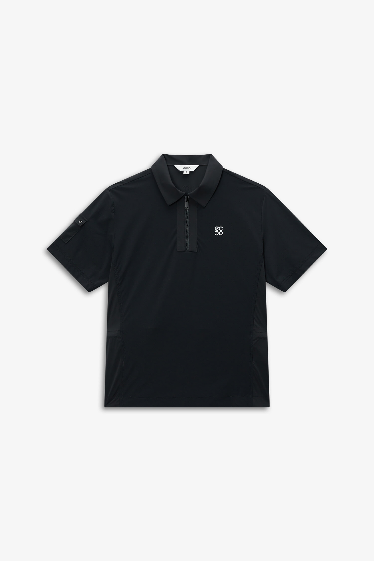 등판 우븐 하이브리드 반팔 카라 티셔츠