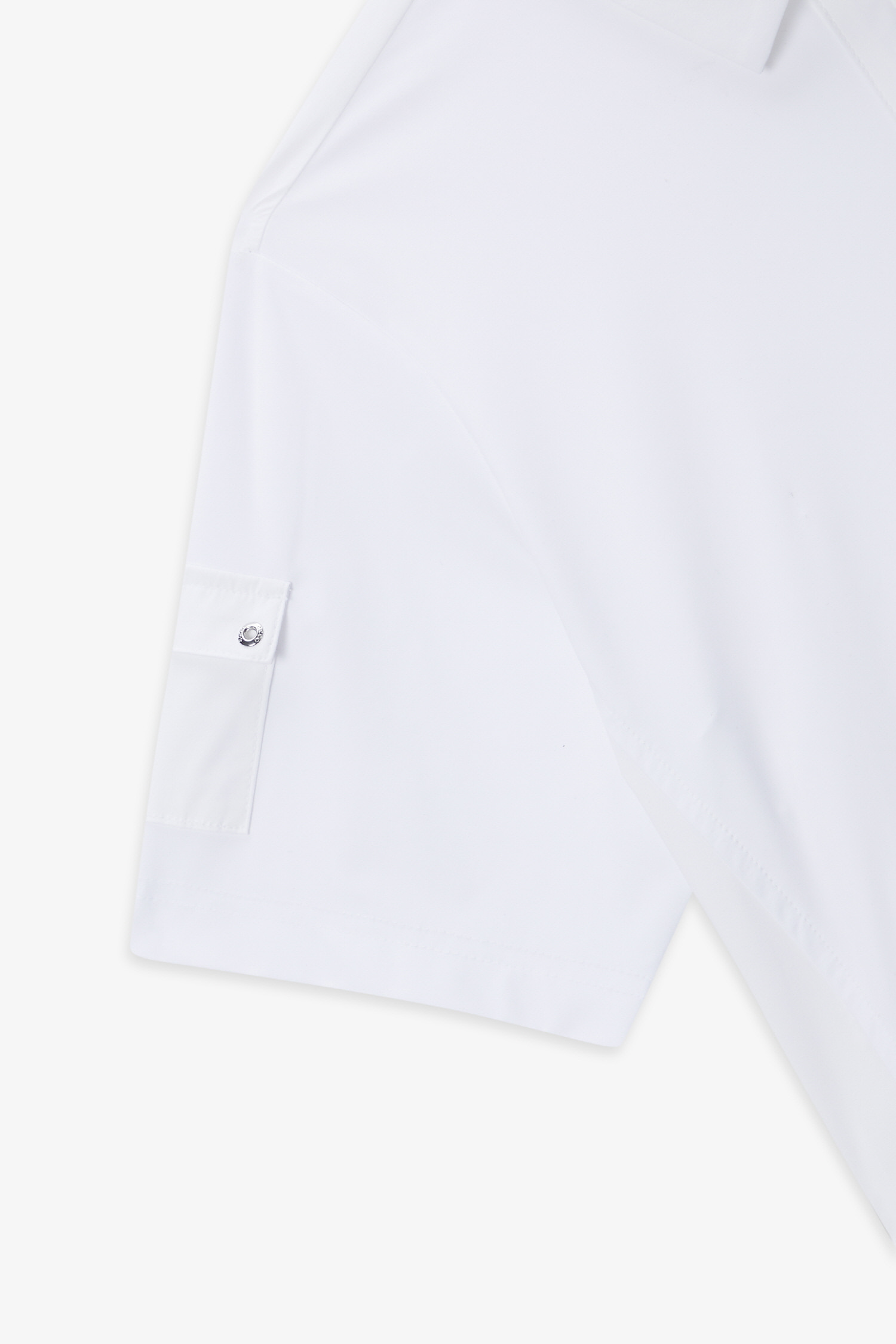 등판 우븐 하이브리드 반팔 카라 티셔츠