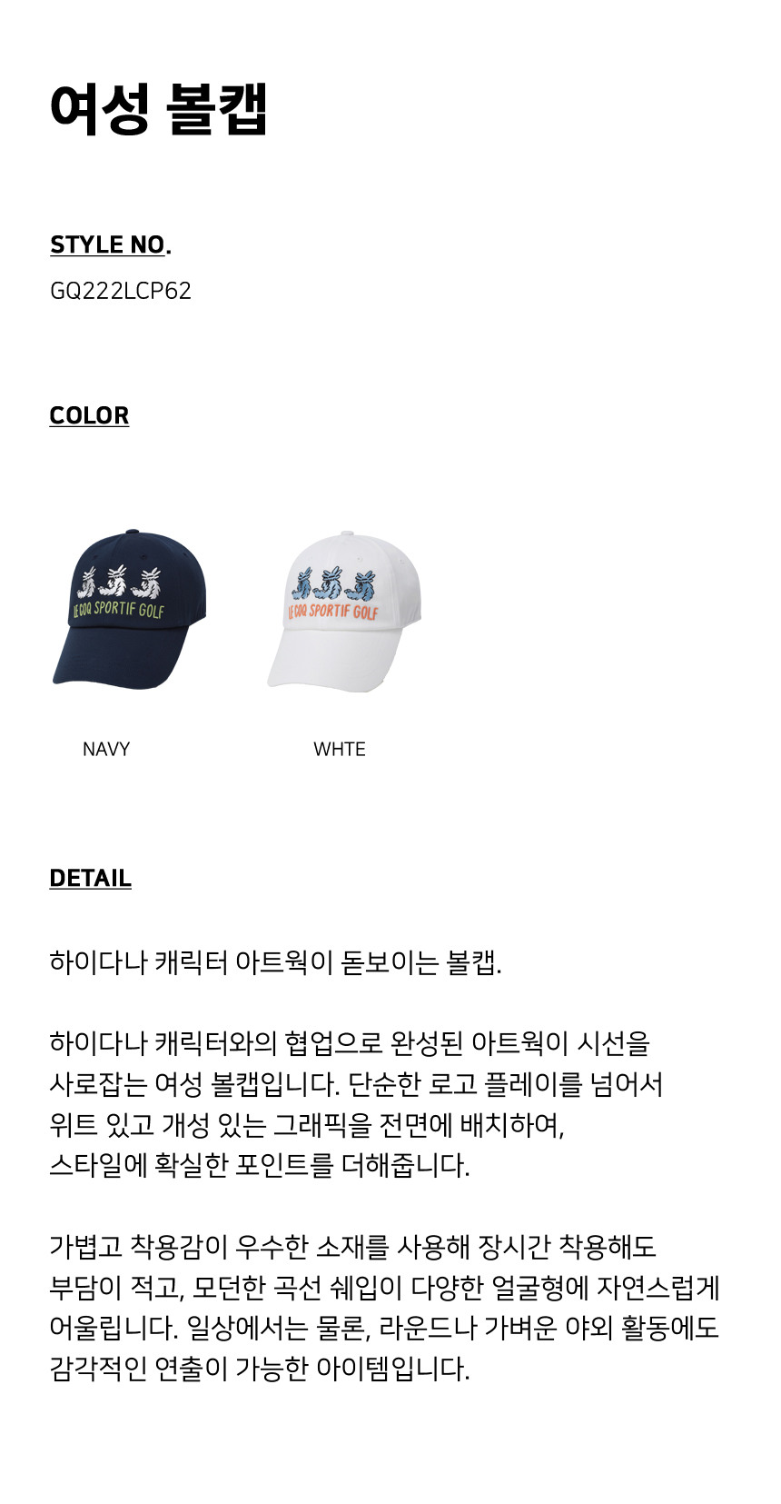 [하이다나 콜라보] 여성 볼캡 (GQ222LCP62)
