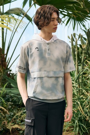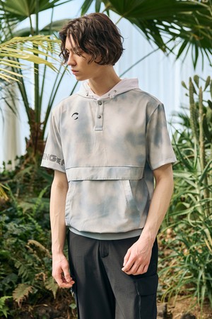 Men's Lightweight Logo Hooded Woven Top 남성 빅로고 프린트 후드 반팔 우븐탑