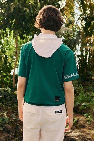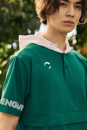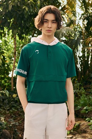 남성 빅로고 프린트 후드 반팔 우븐탑 그린